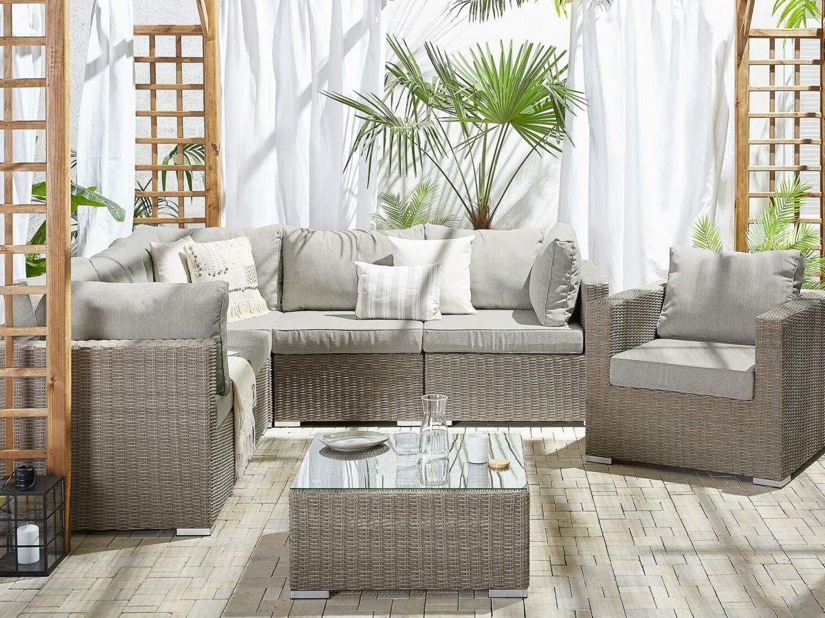 Luxus Rattan Gartenmöbel Lounge Selina Sitzgruppe Sitzgarnitur Sessel grau Terrasse