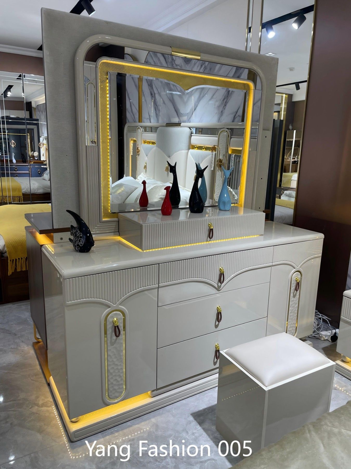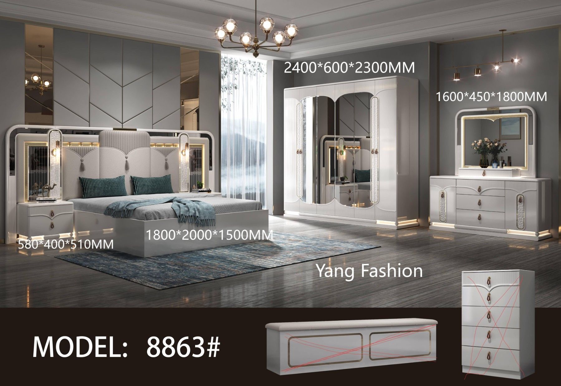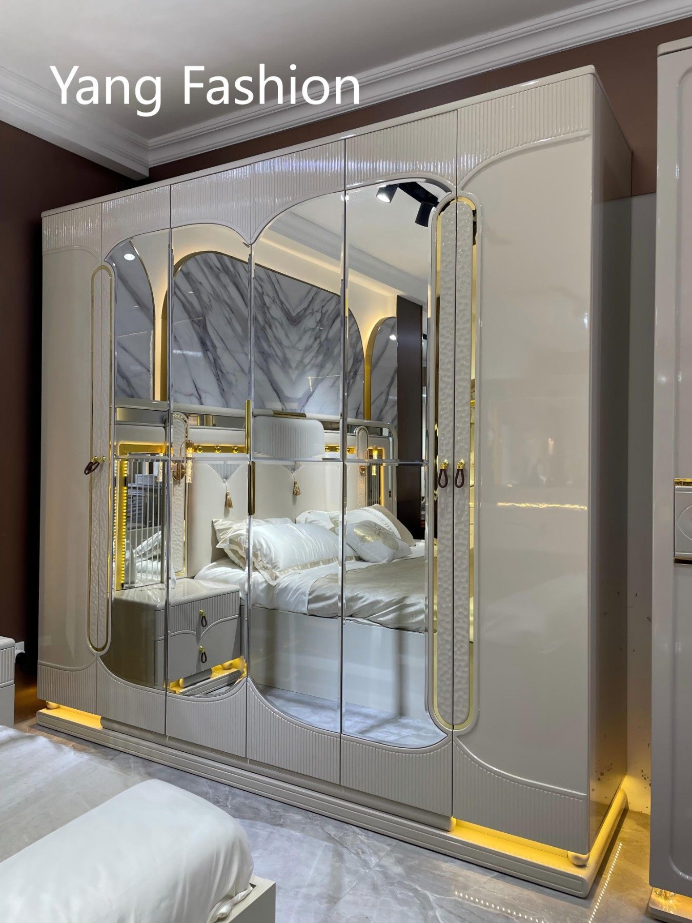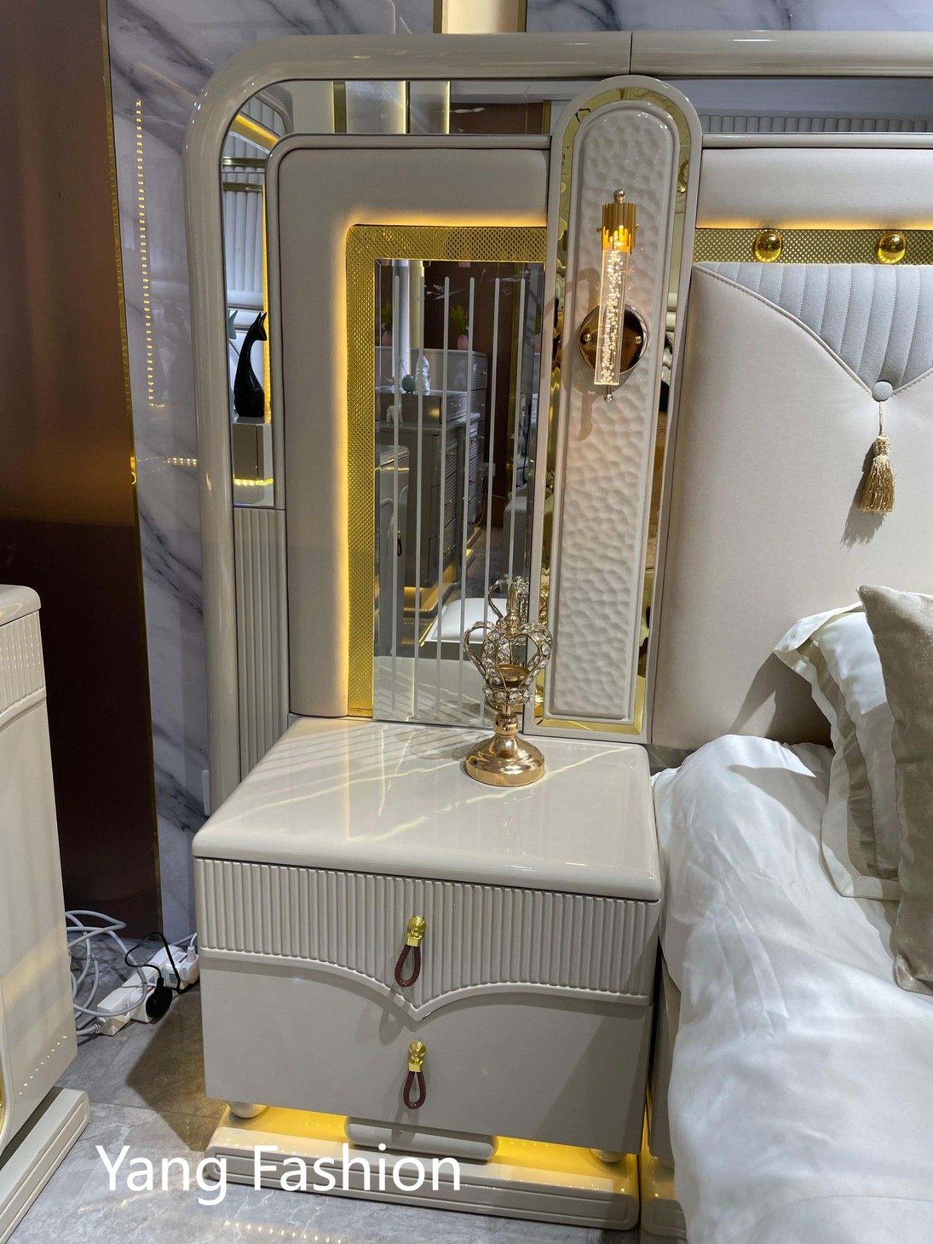 Luxus-Schlafzimmer-Komplettset, 6-teilig, Hochglanz in Beige und Gold, Bett 180 × 200