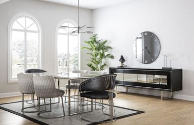Set 7tlg Esstisch Stühle Sideboard mit Spiegel Wohnzimmer Luxus Essgruppe Modern