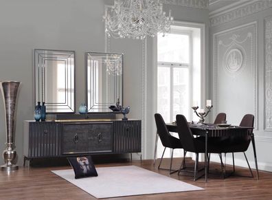 Luxus Esszimmer Set Esstisch 4x Stühle Luxus Anrichte mit 2x Spiegel Neu Set