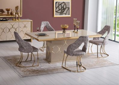 Goldenes Esszimmer Set Luxus Garnitur Esstisch mit Stühlen Designer Möbel