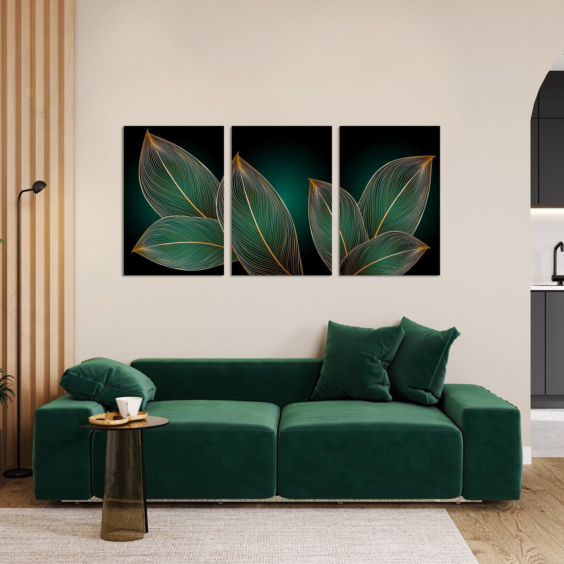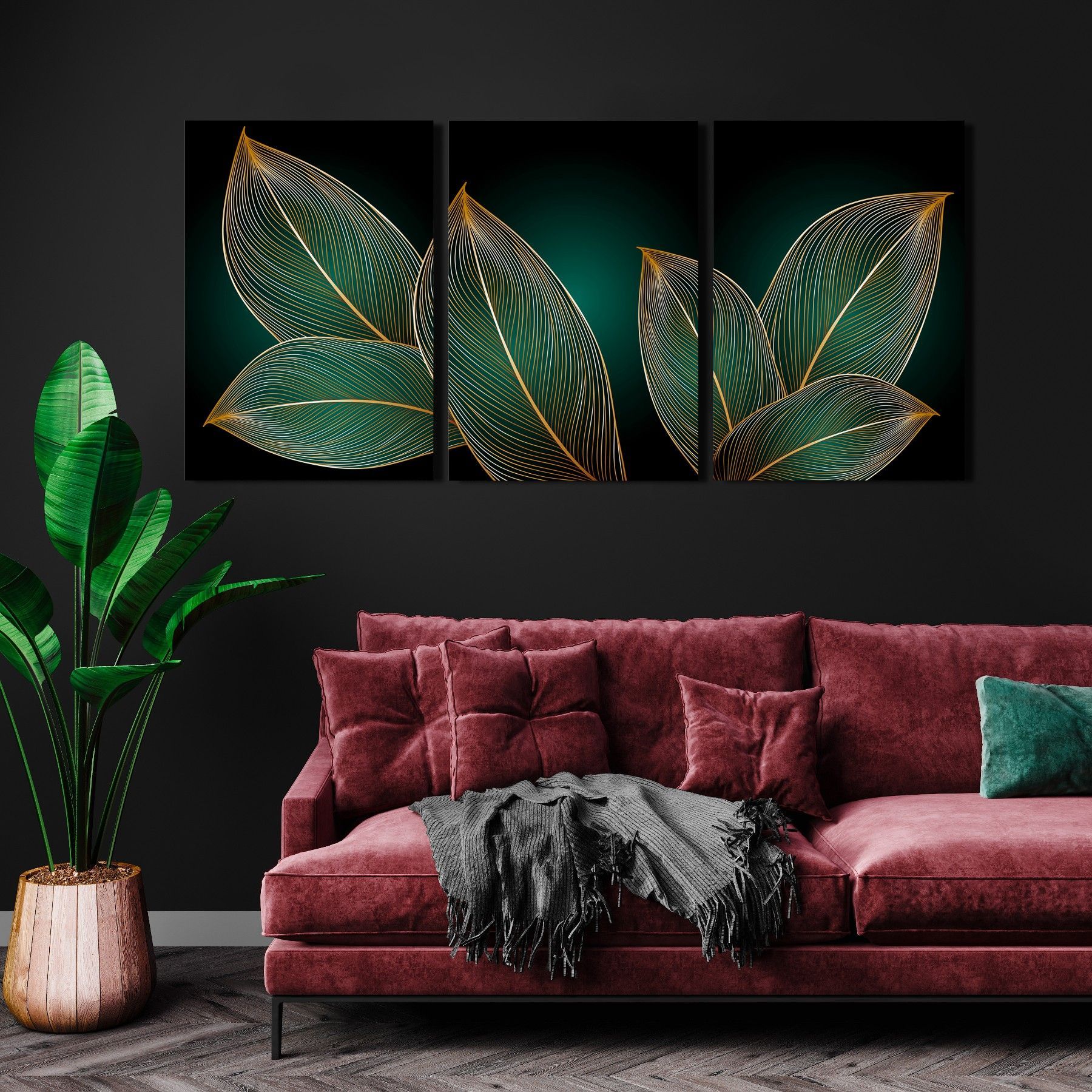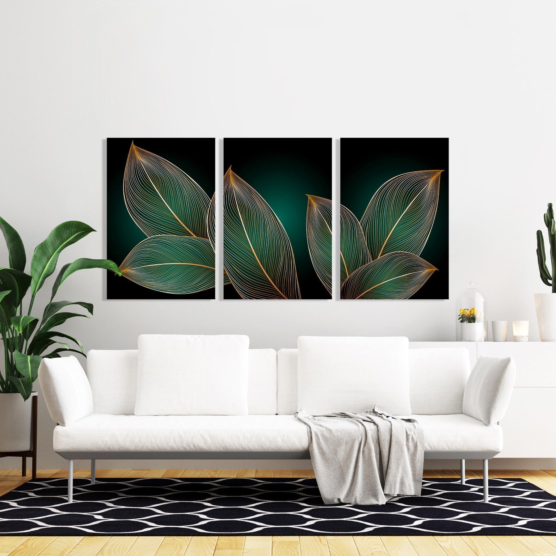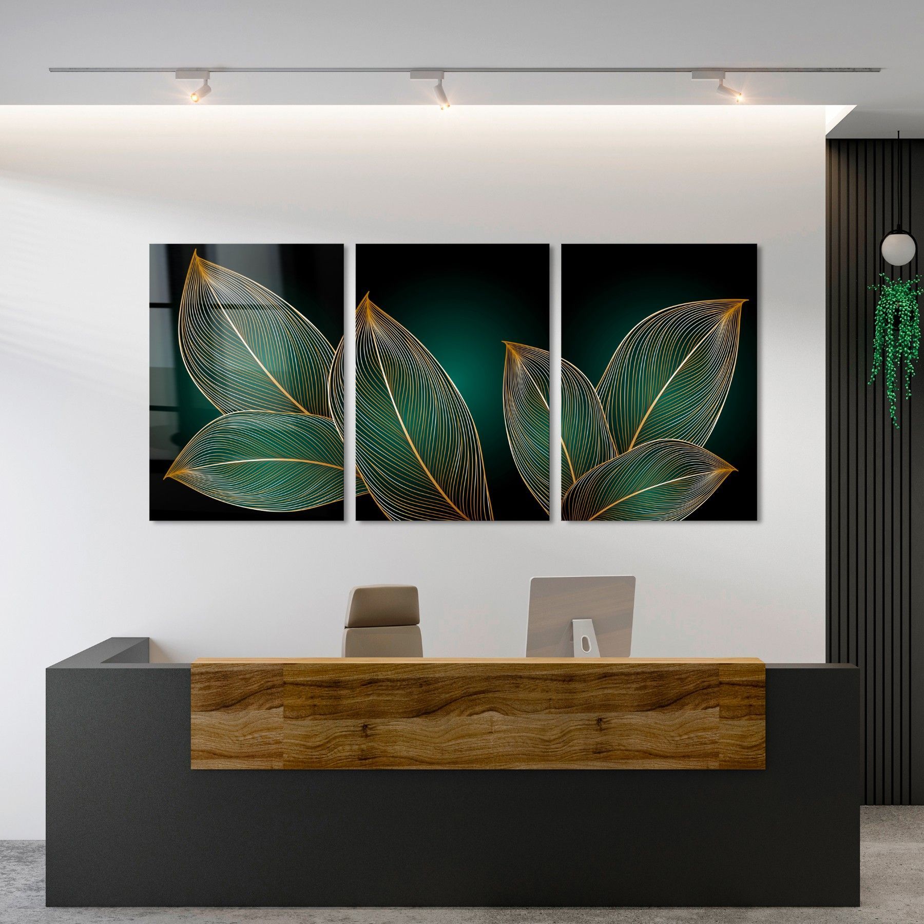 Luxus Set Moderne Wandbilder Golden Blumen und Blättern Poster, Acrylglas , Leinwand