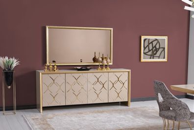 Esszimmer Garnitur Sideboard mit Spiegel Luxus Sideboard Holz beige 2tlg