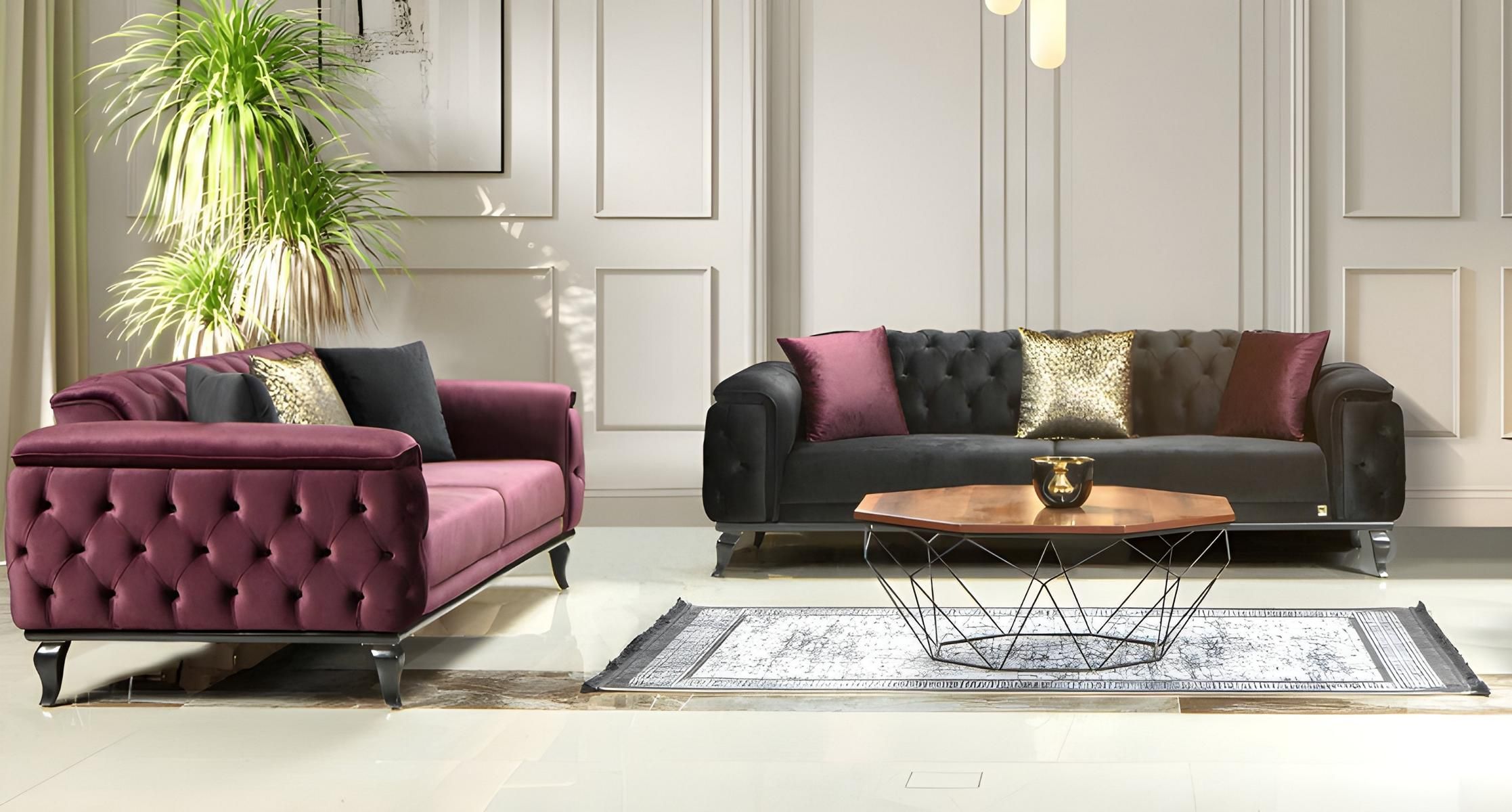 Luxus Sofa 3 Sitzer Couch Polstercouch Chesterfield Verstellbar Lila 225cm