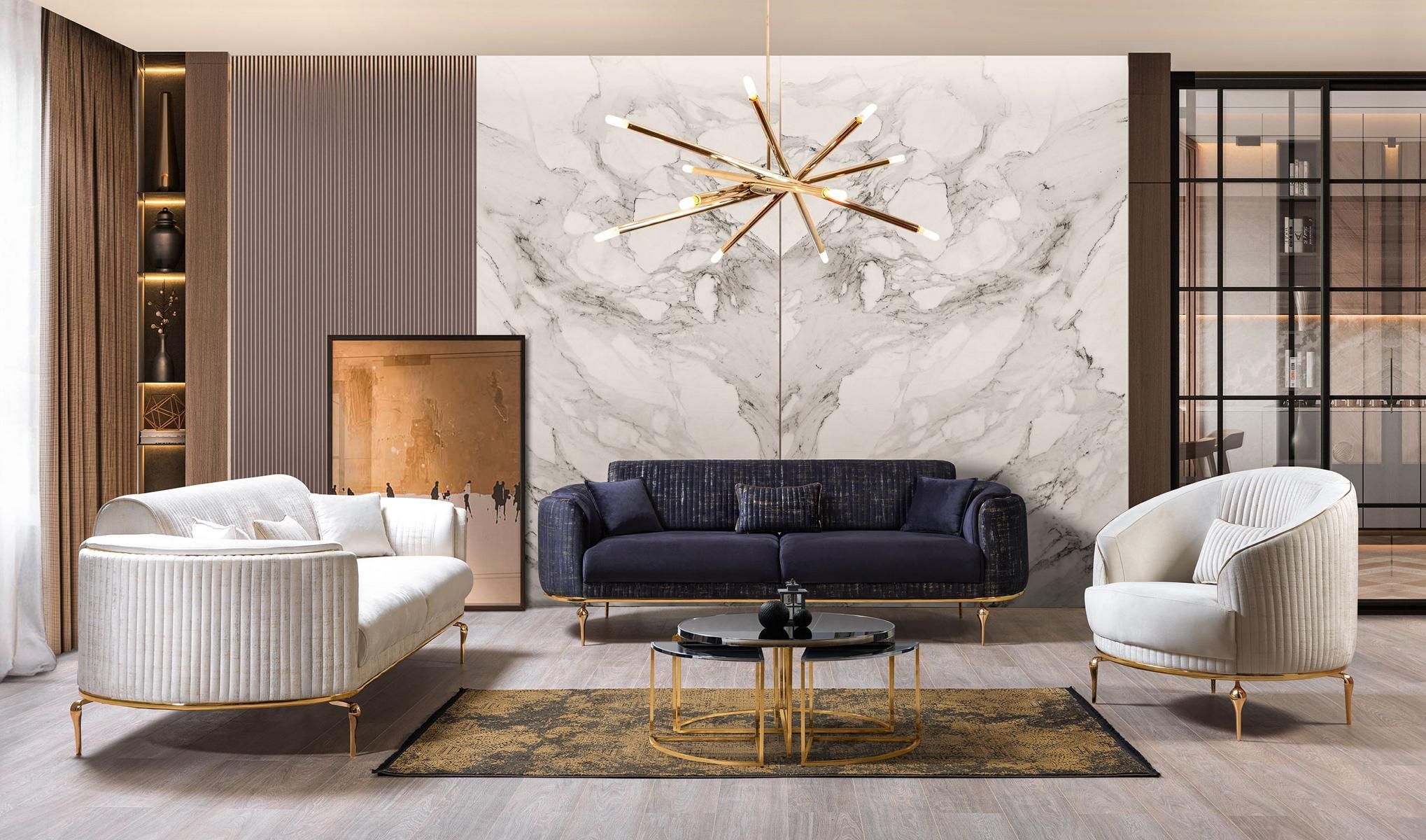 Luxus Sofa 3 Sitzer Wohnzimmer Blau Modernes Sofa Dreisitzer Möbel