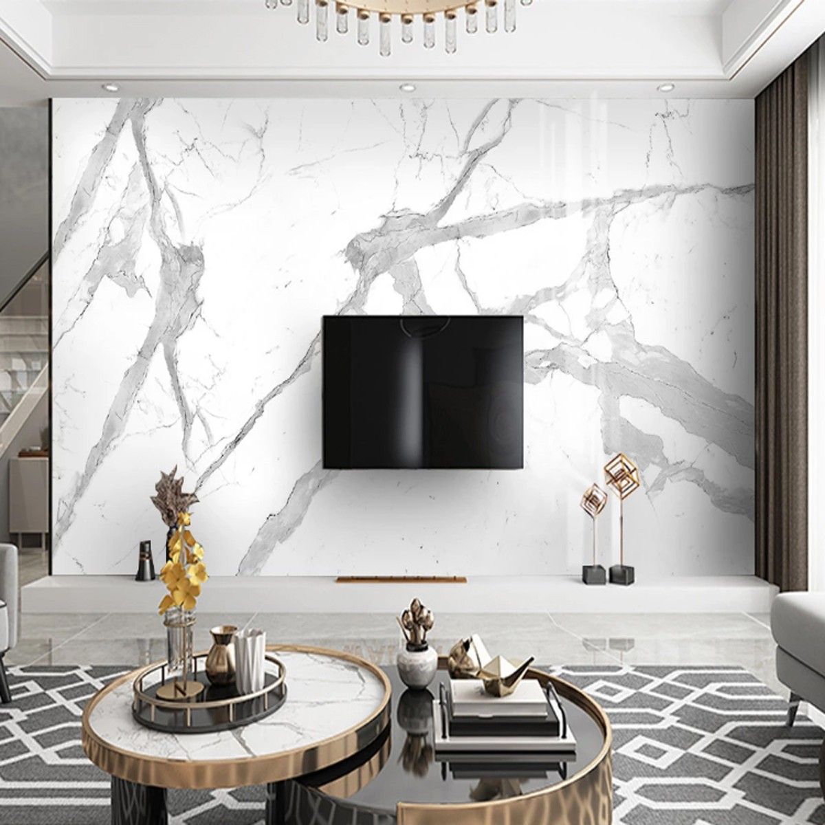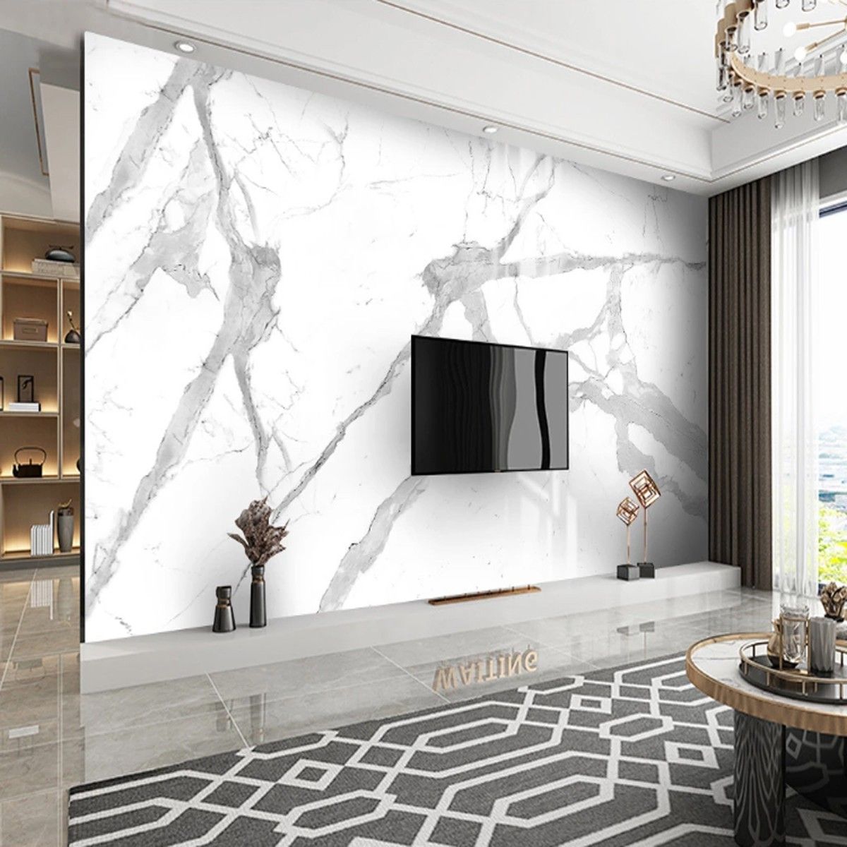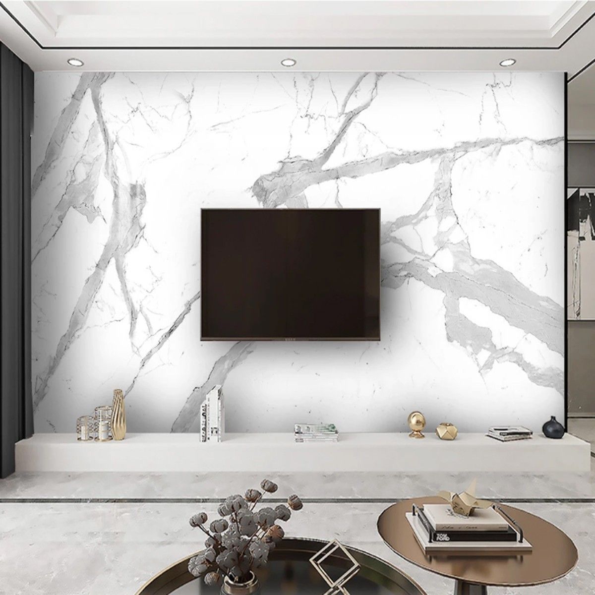 Luxus Wanddeko - Graue Geometrie & Jazz White Marmor Stil 7214