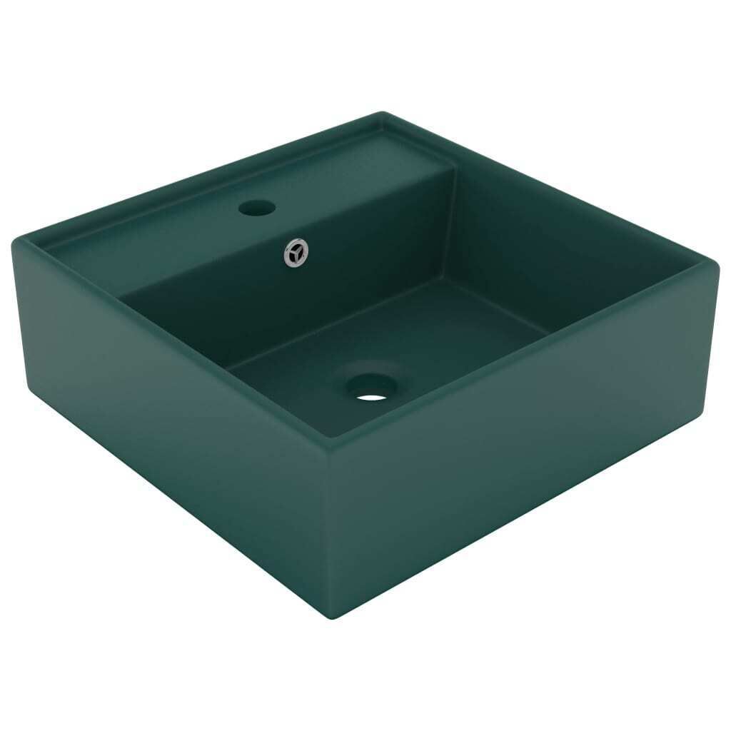 VIDAXL Luxus-Waschbecken Überlauf Quadratisch Matt Dunkelgrün 41x41 cm