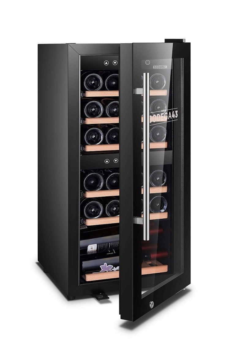 Kompakte Weinklimaschrank mit 2 Temperaturzonen. Kapazität: 24 Flaschen.