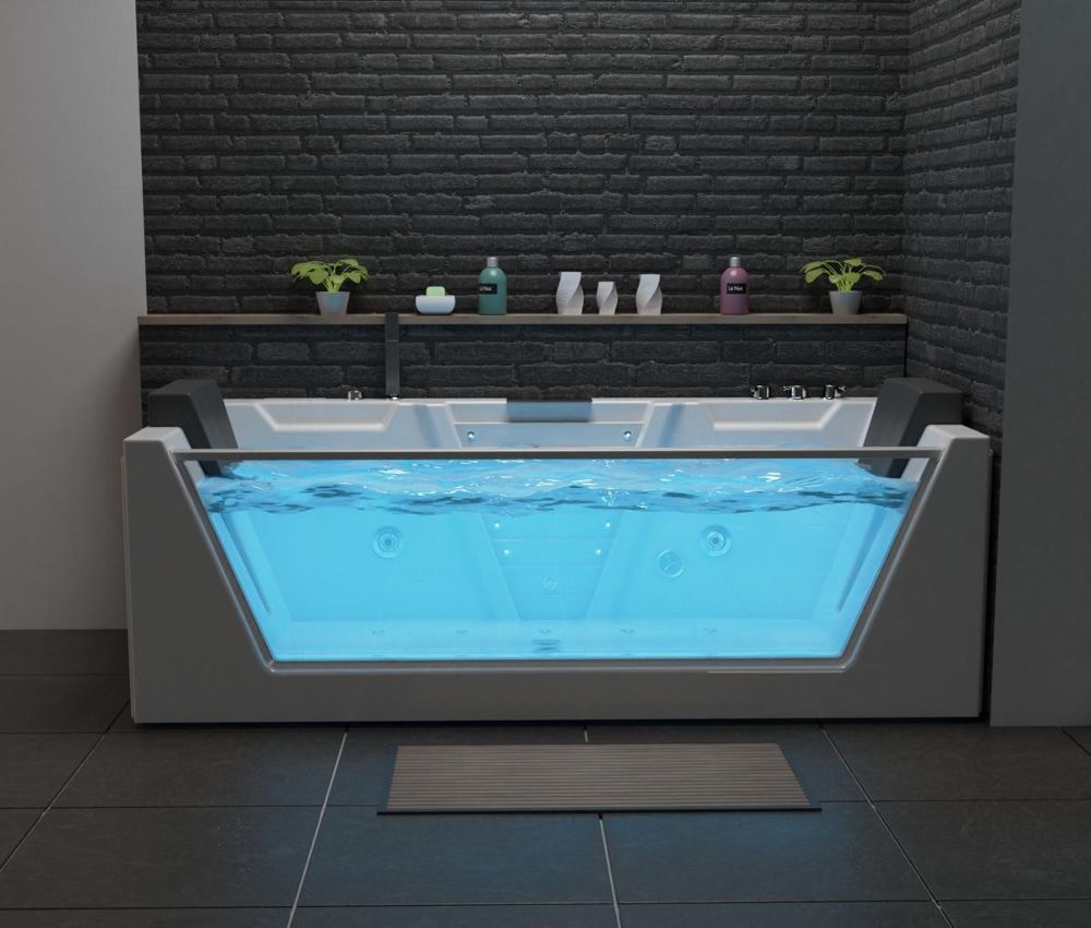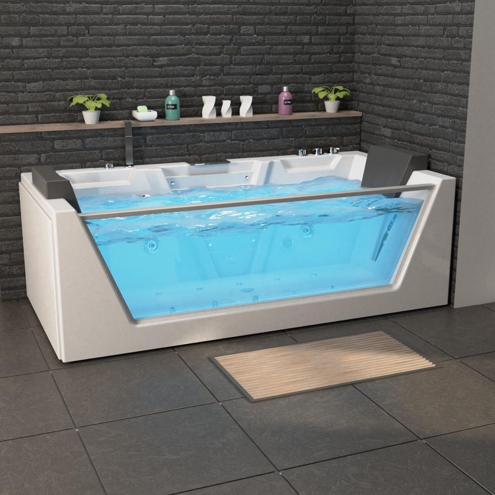 Luxus Whirlpool Badewanne 180x88 cm mit Glas LED Heizung Ozon Armaturen Radio günstig