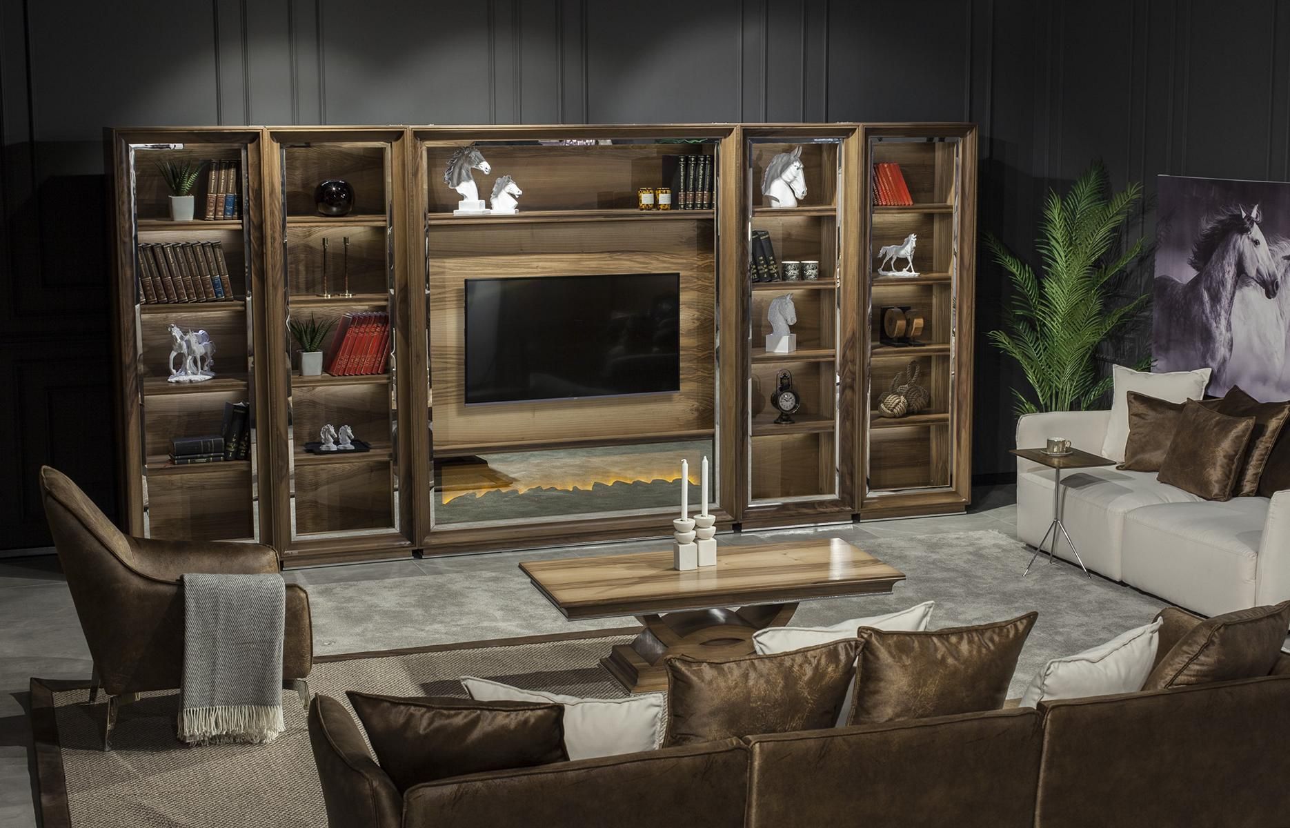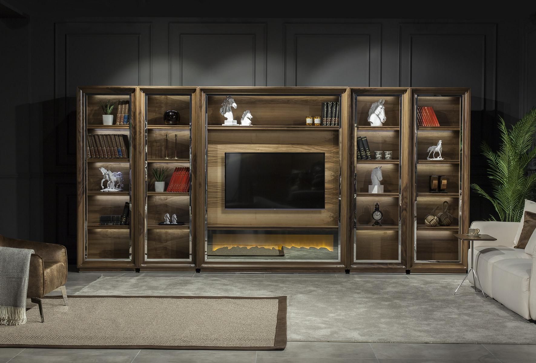Luxus Wohnwände 448cm Schrank Wand Wohnwand mit Kamin Wohnzimmer Holz