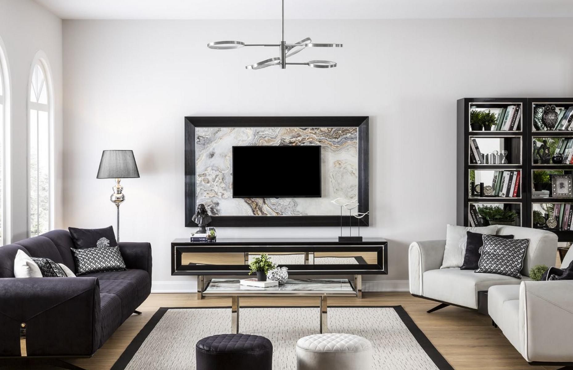Luxus Wohnwand + Sideboard Lowboard Regal Wohnzimmer Schwarz Hochglanz