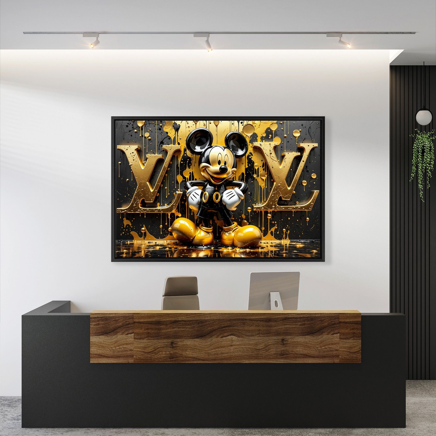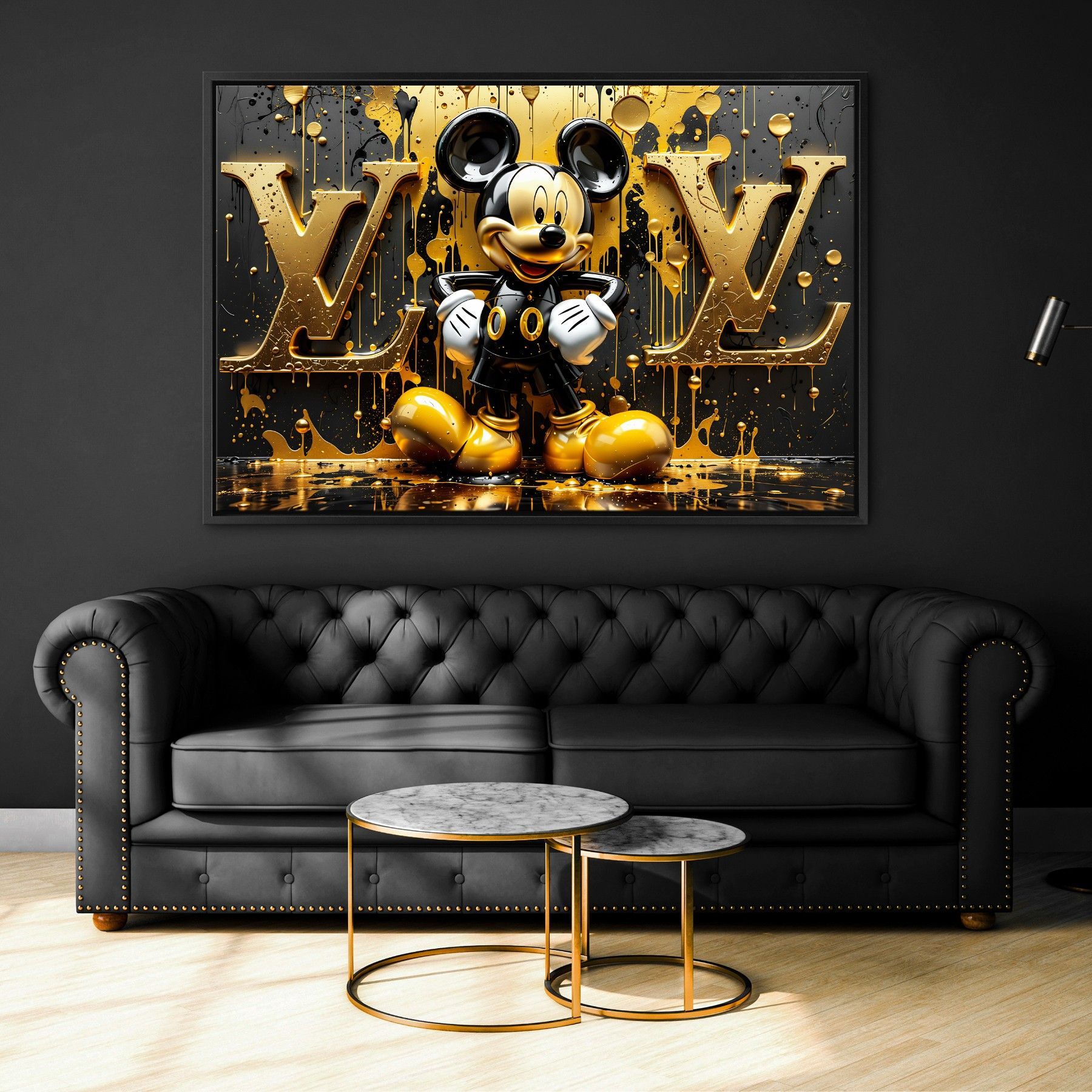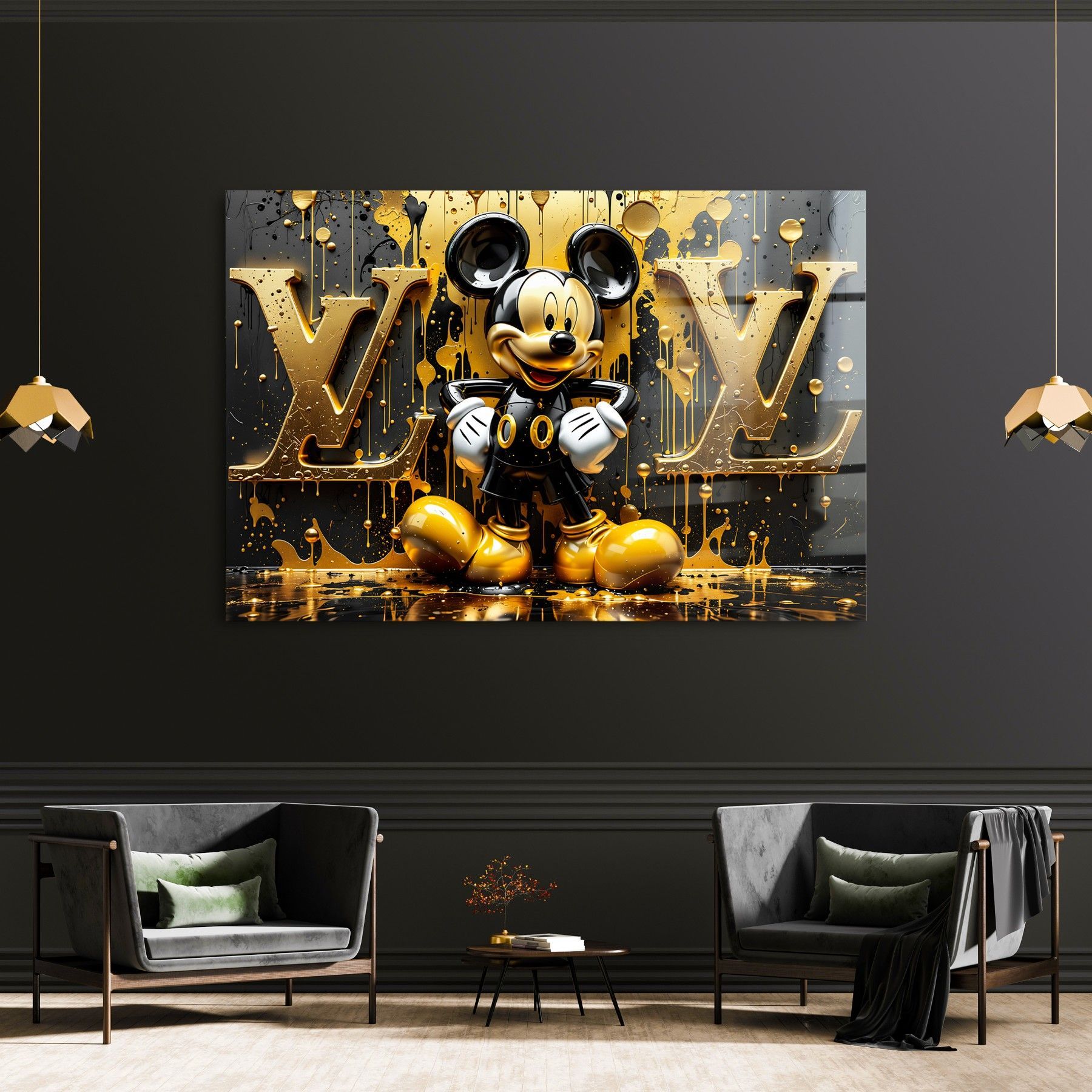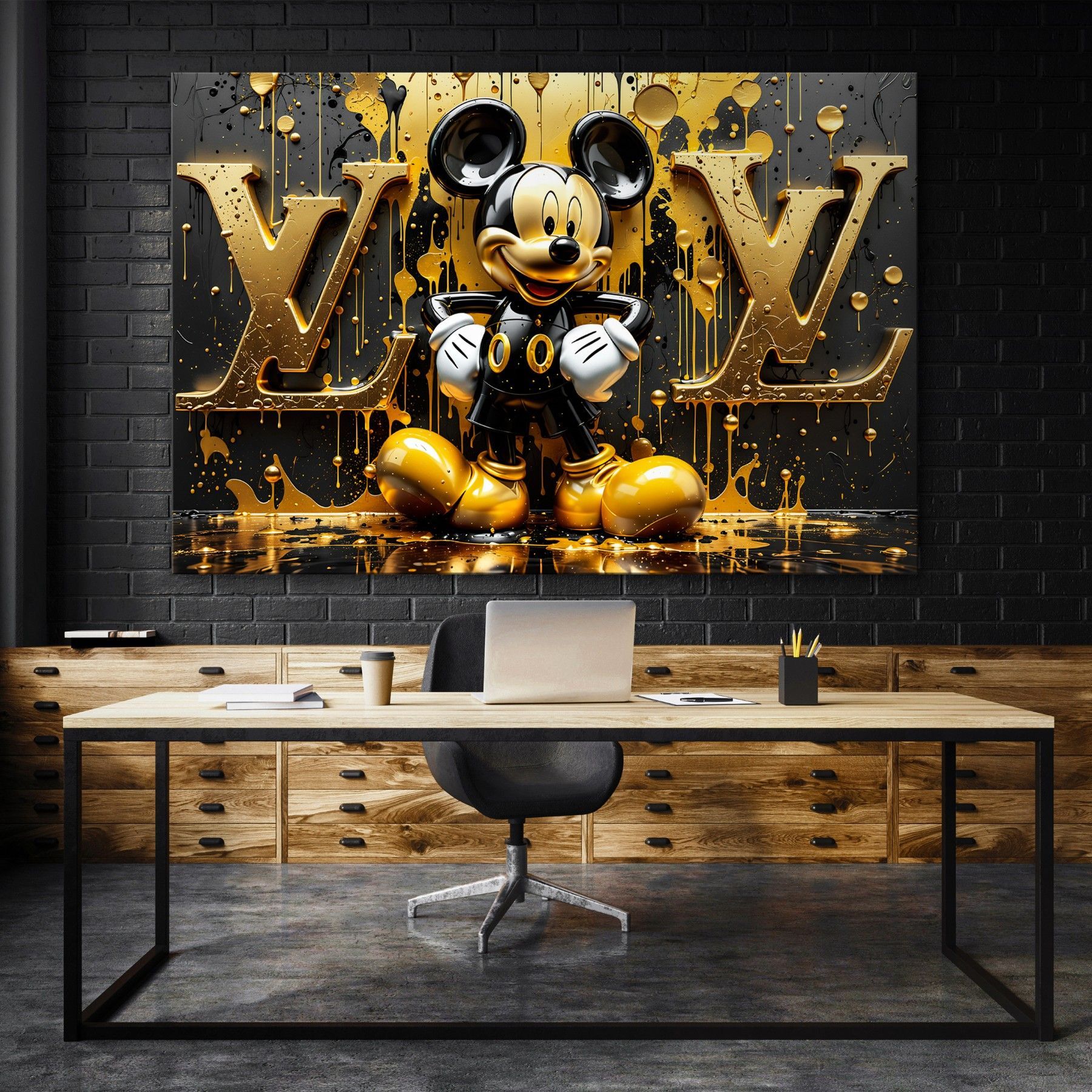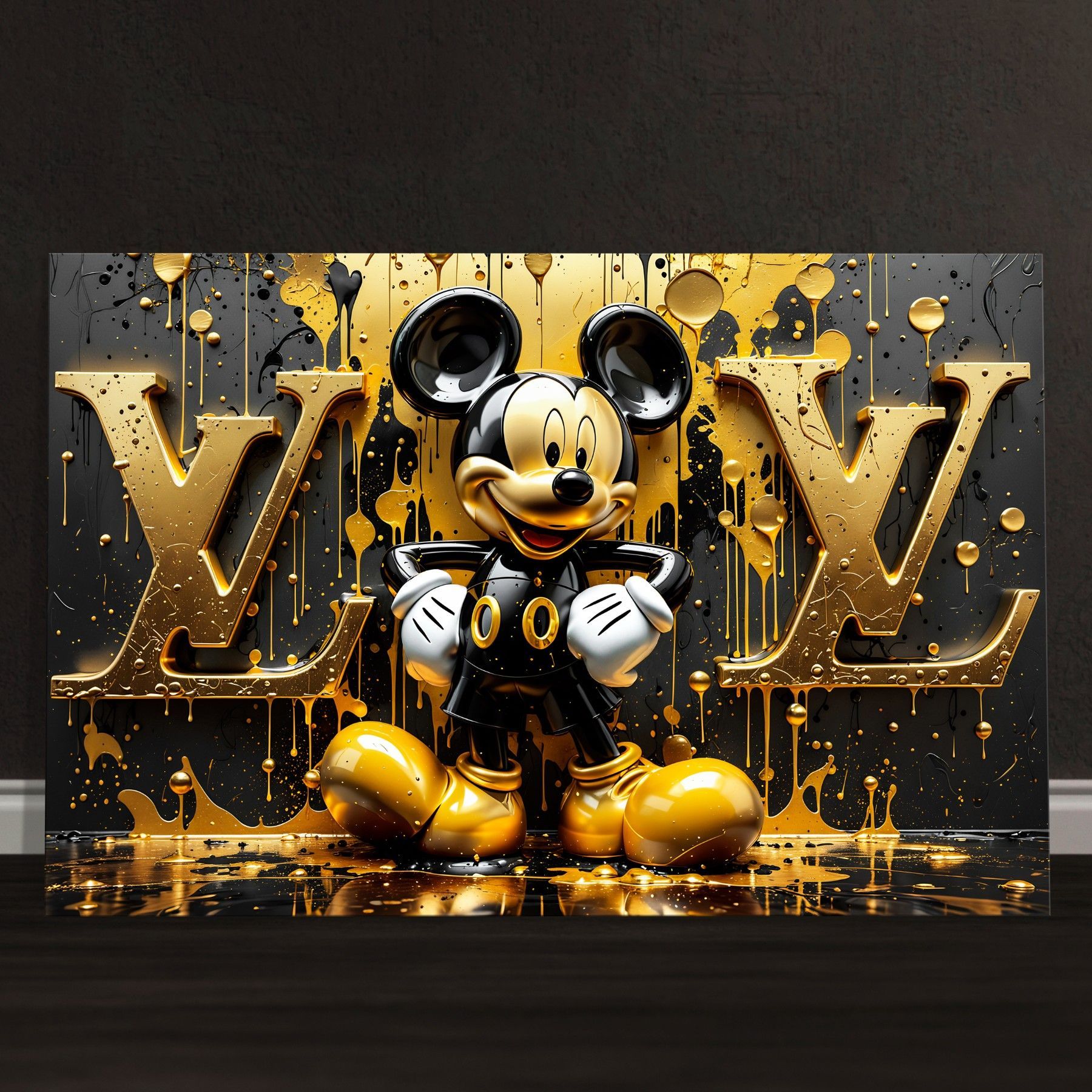 Luxusmodemarke LV, Goldene Micky Maus, Wandbild Kunst Bild, Leinwand, Acrylglas Art B