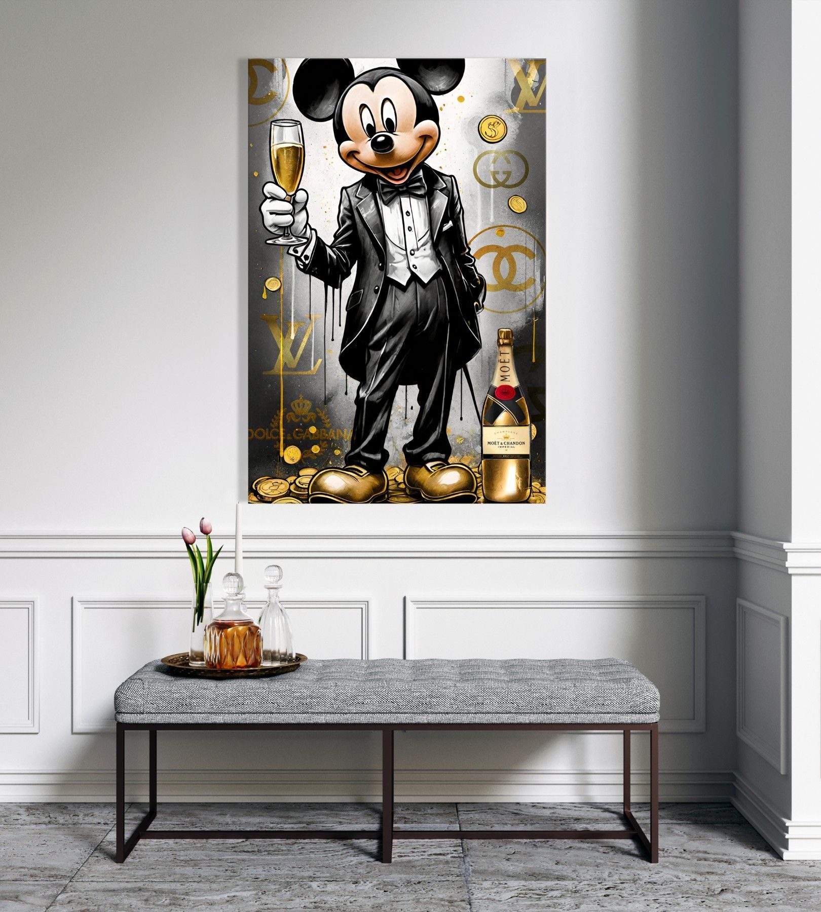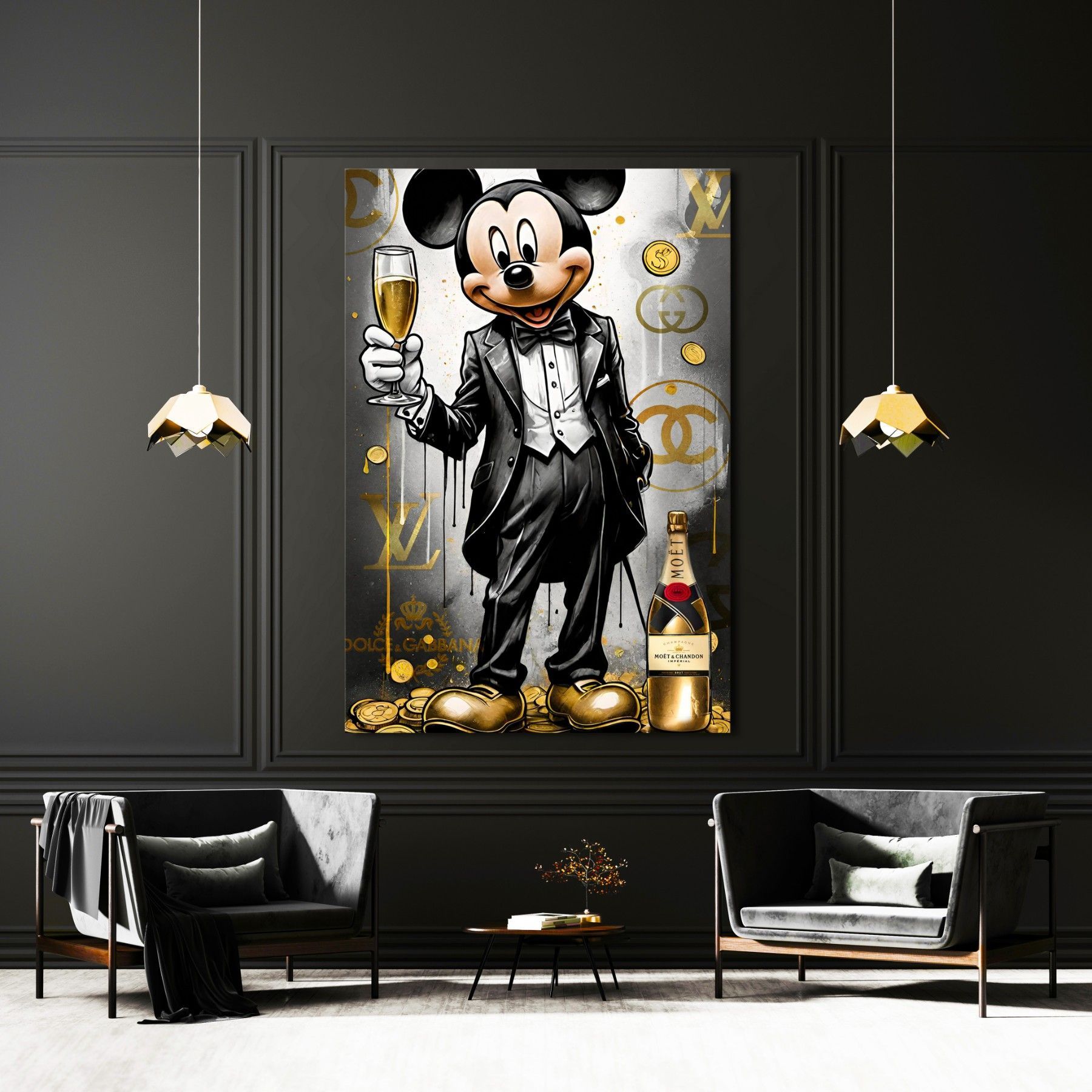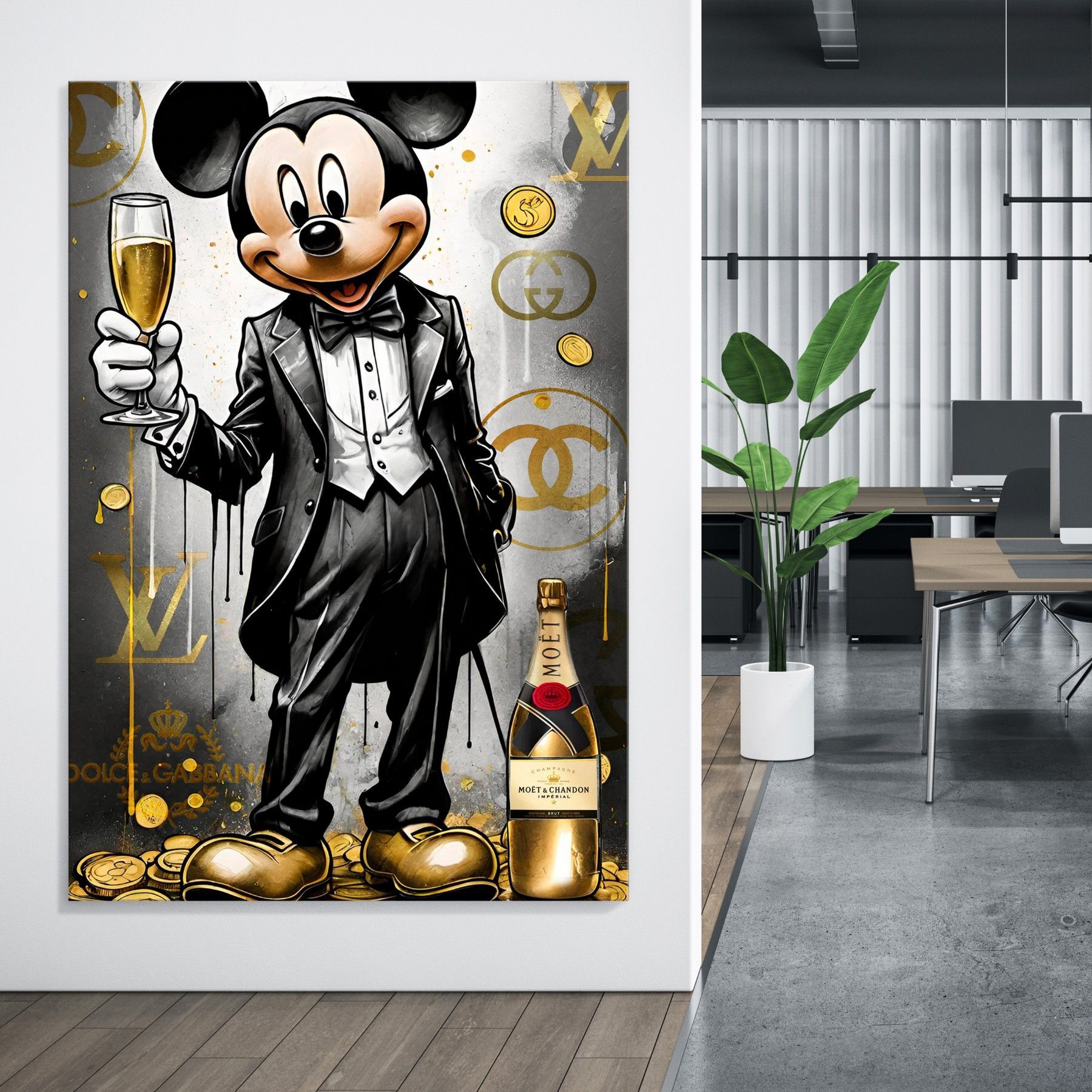 Luxusmodemarke Micky Maus Reich, Champagne POP ART Kunst, Poster, Leinwand, Acrylglas