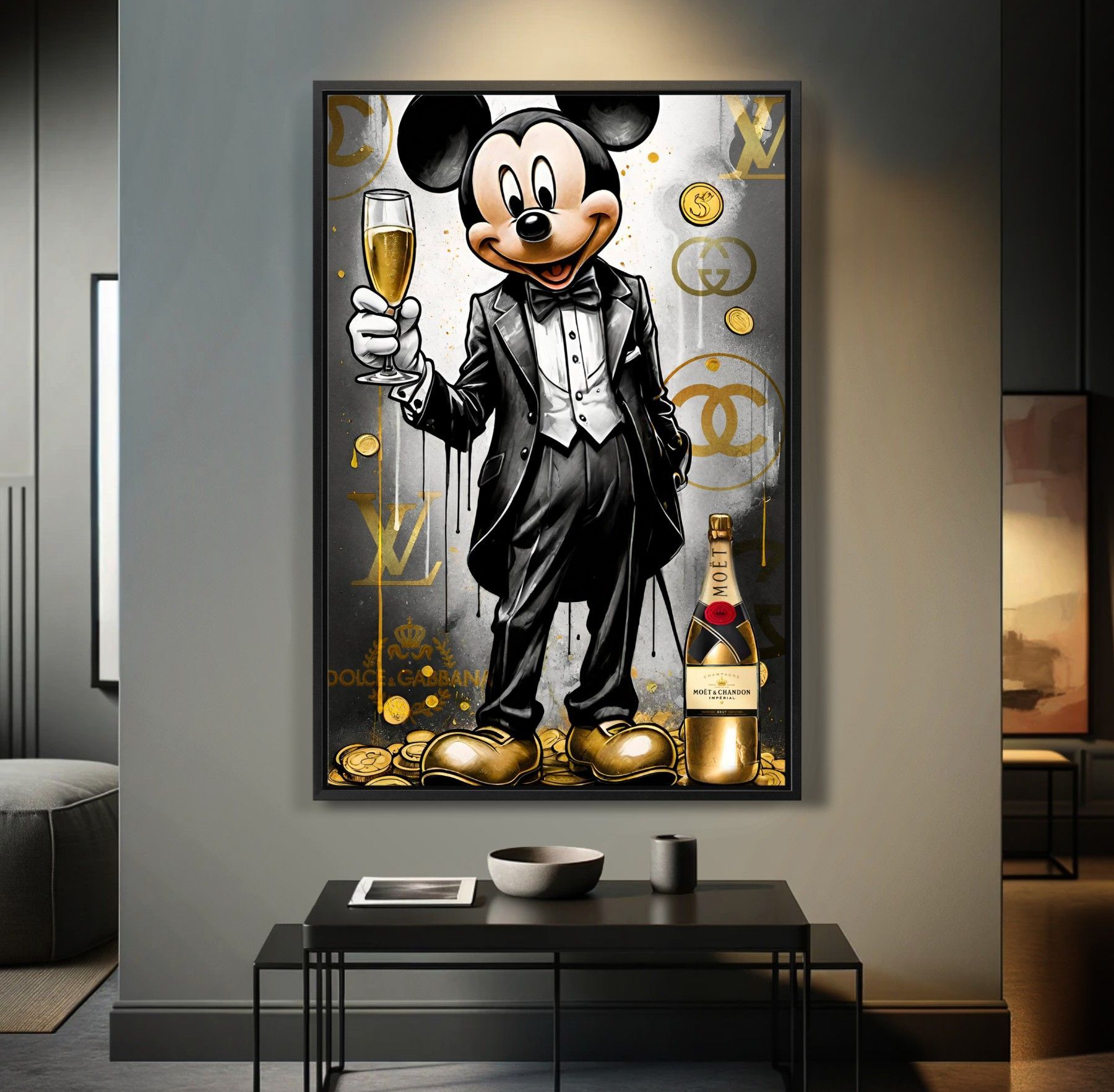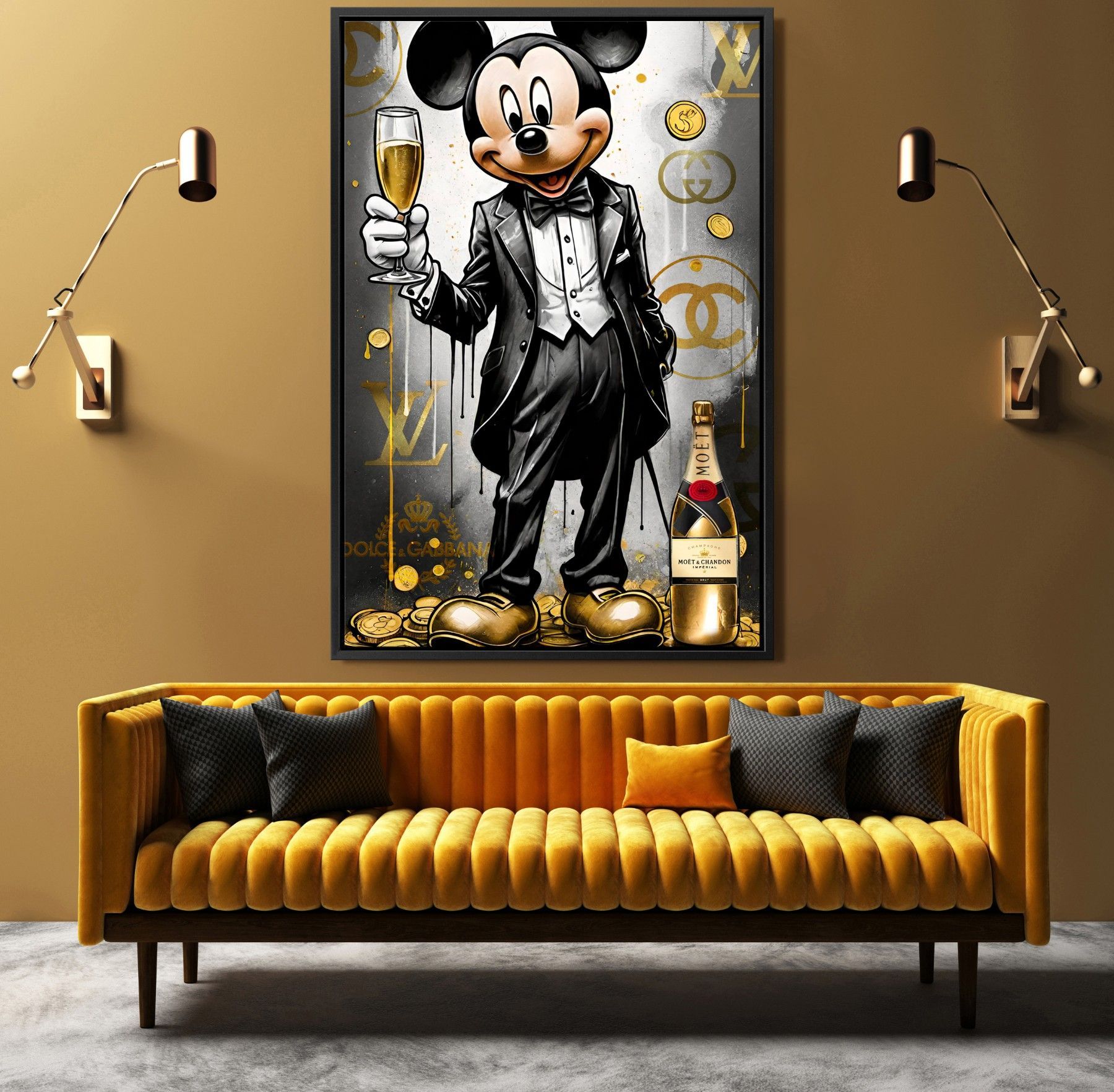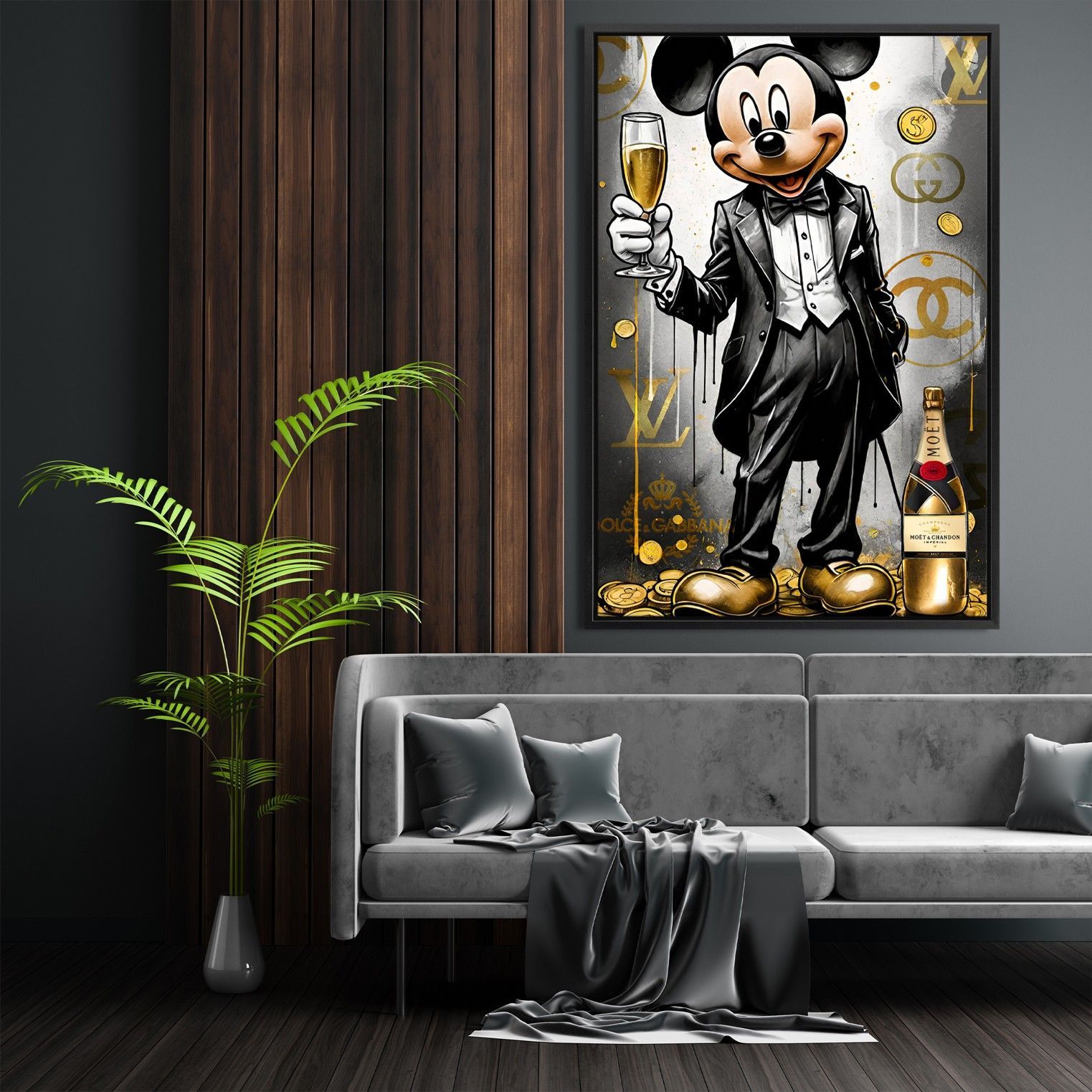 Luxusmodemarke Micky Maus Reich, Champagne POP ART Kunst, Poster, Leinwand, Acrylglas
