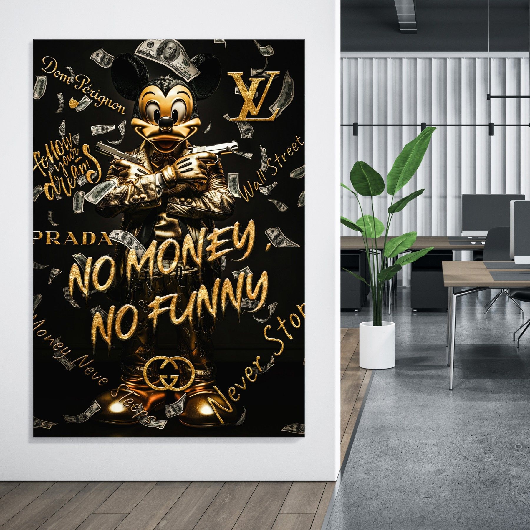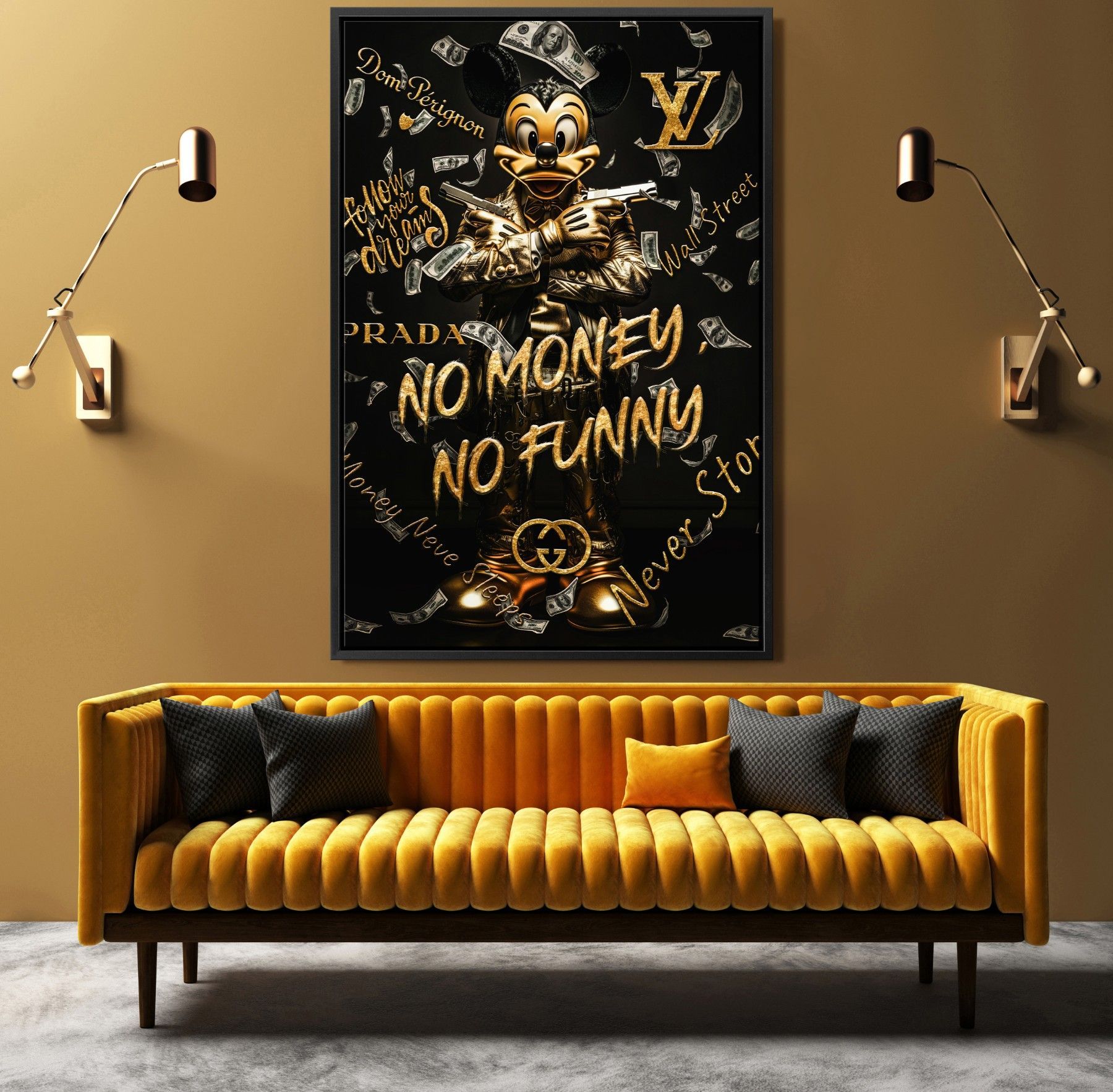 Luxusmodemarke Micky Maus Reich, Golden POP ART Kunst, Leinwand, Acrylglas, Poster