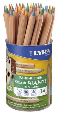 • 36x LYRA 3933365 Farbstift Farb-Riesen 4-Color naturbelassen im Köcher