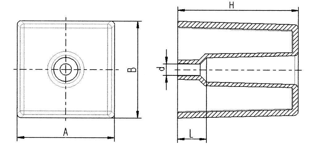Möbelfüße/ Polsterfüße/ Gleitscheiben quadratisch 50 x 50 mm 62 mm hoch, Kunstst.
