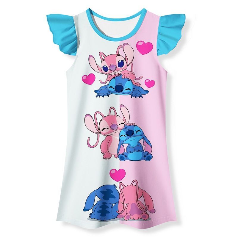 Mädchen Onesie Stitch Angel Nachthemd Sleep Shirt Sommer Flutter Ärmel Nachtwäsche