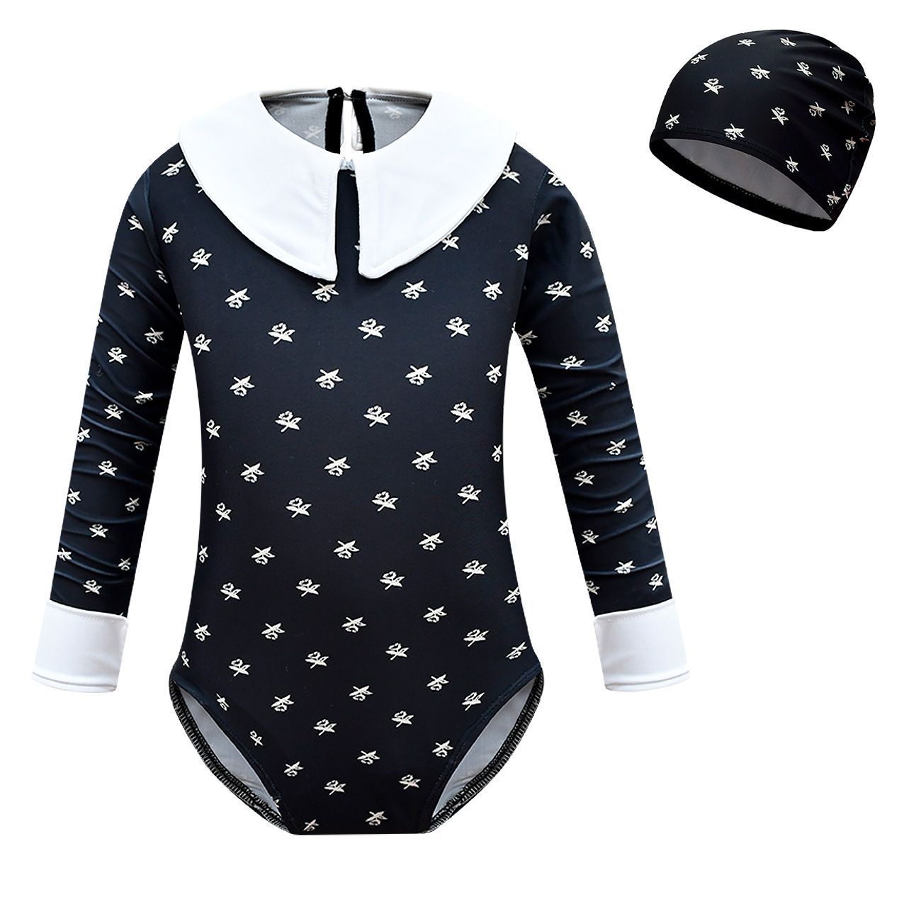 Mädchen Wednesday Addams One-piece Bating Suit Puppenkragen Langarm Maillot