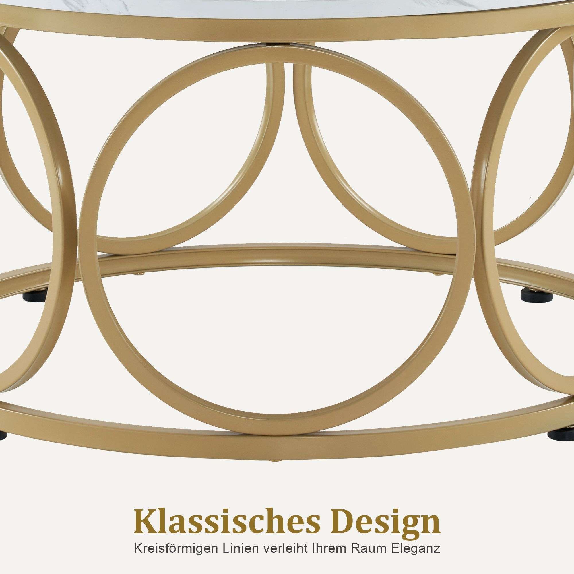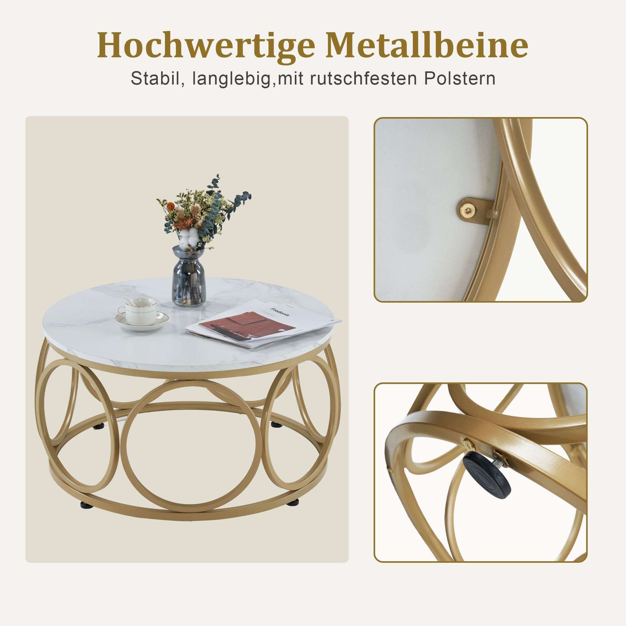 M MCombo Couchtisch Sofatisch Beistelltisch Kaffeetisch Marmor-Gold, Rund 2102