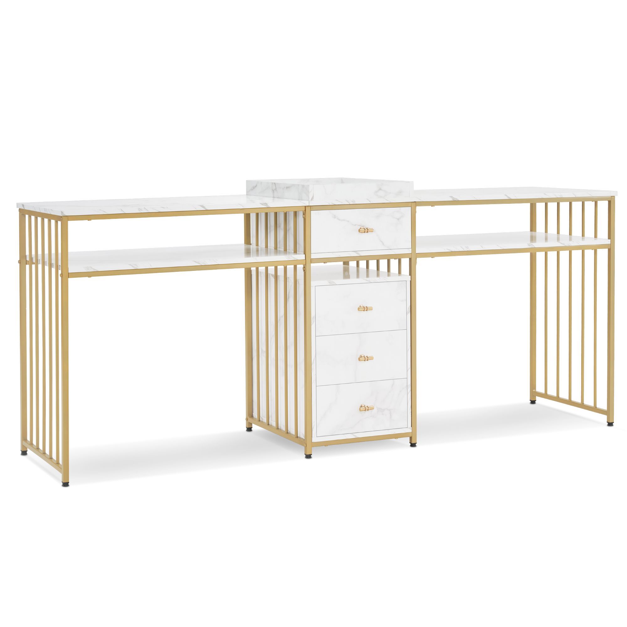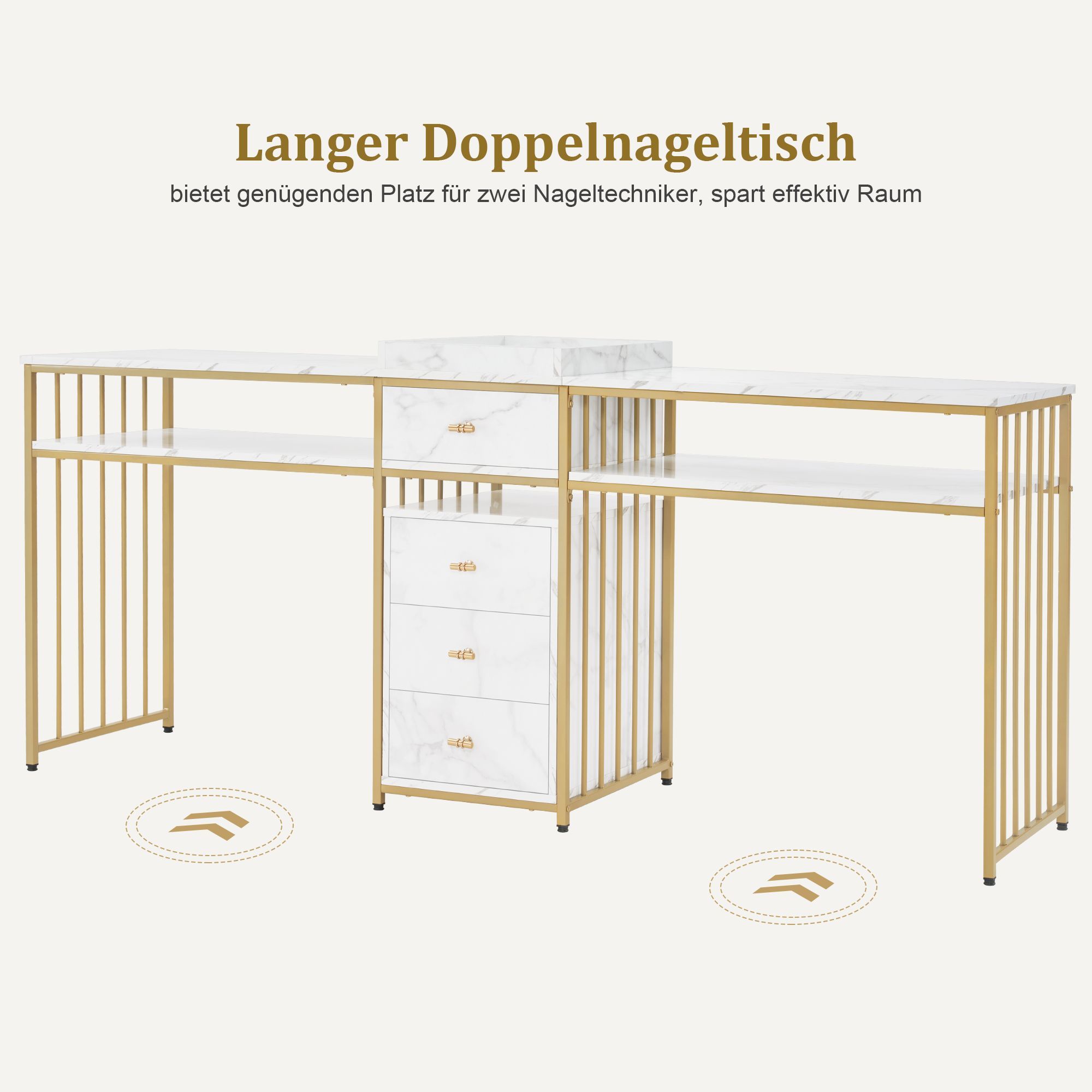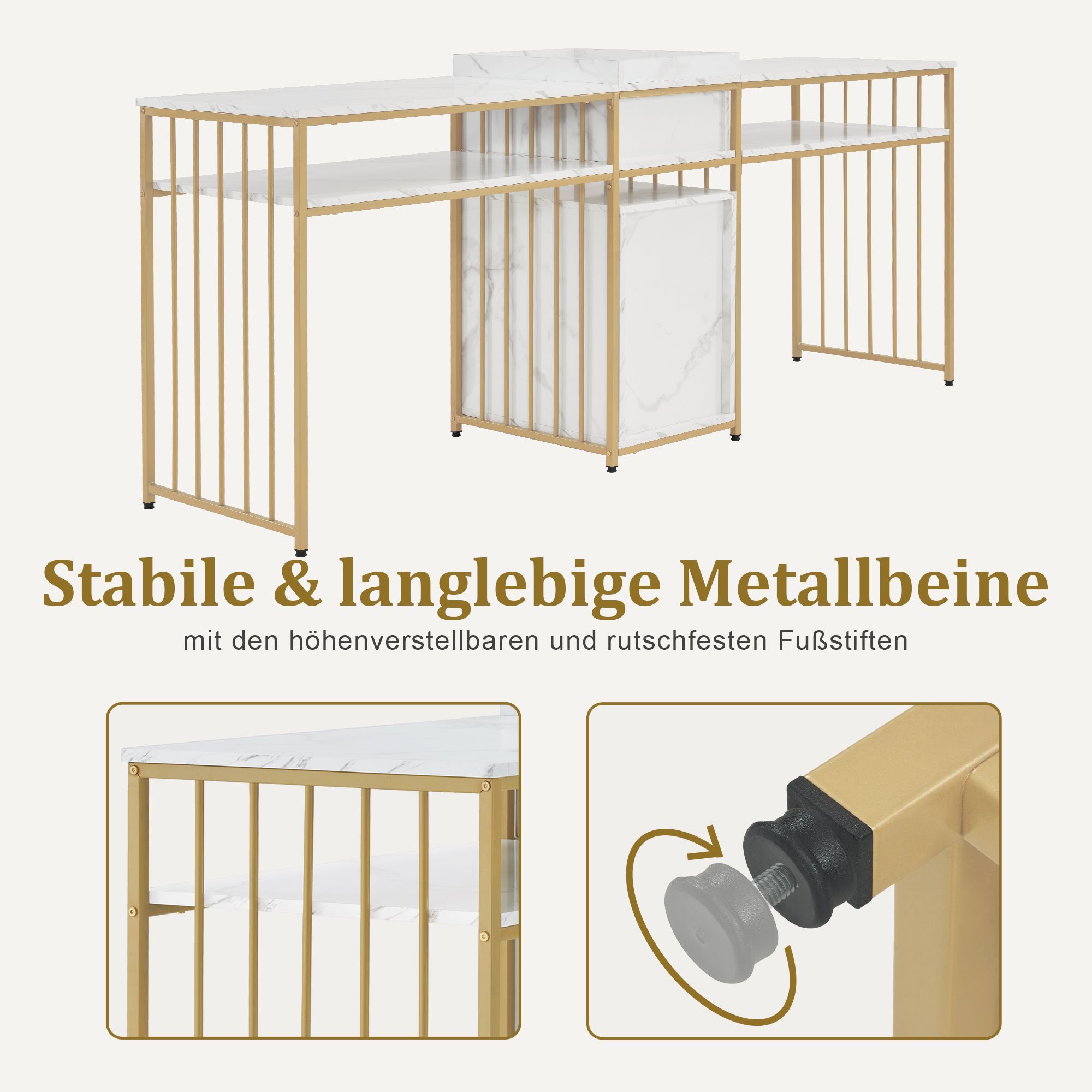 M MCombo Doppelnageltisch mit Schubladen, Schreibtisch, 2413 (Weiß-Gold)