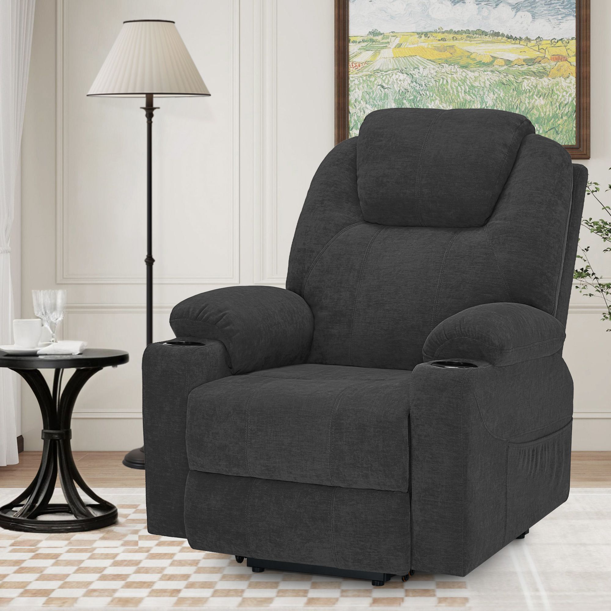 M MCombo Fernsehsessel mit Aufstehhilfe Elektrisch 7040EY (Chenille, Grau)