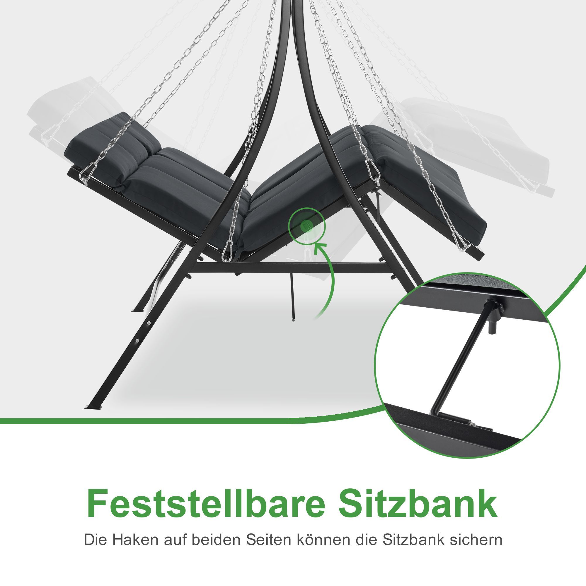 M MCombo Hollywoodschaukel Liegefunktion Gartenschaukel 3 Sitzer, 8018