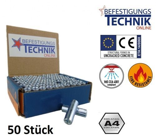 M10x40mm Bohr Ø 12mm Einschlaganker Einschlagdübel Beton Dübel rostfrei A4 ETA Fische