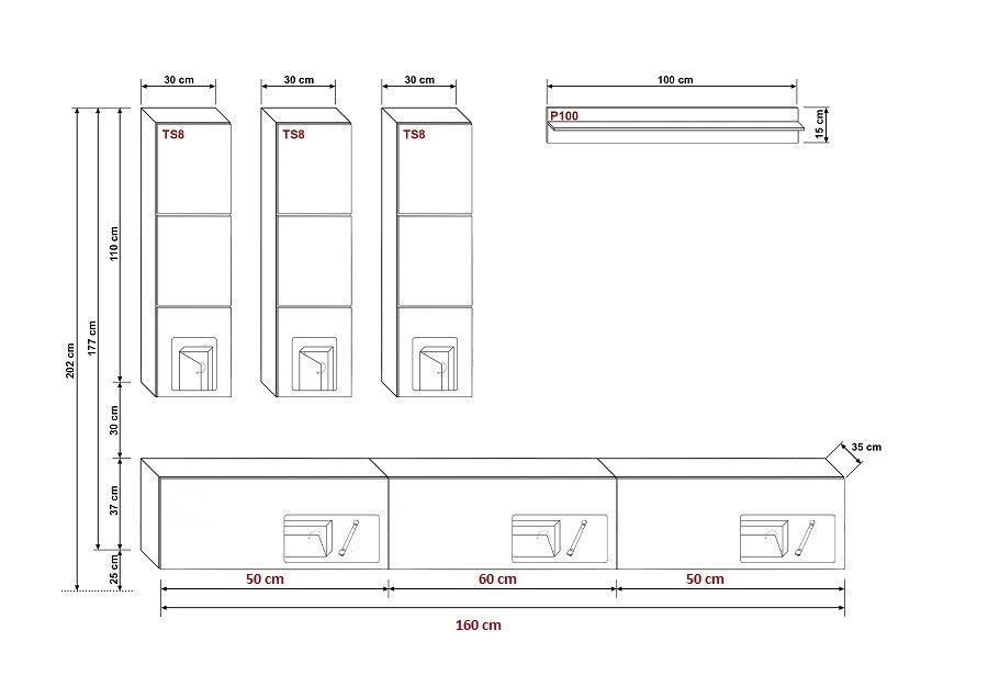 M17 1A Möbel Wohnzimmer Wohnwand Mediawand Wohnschrank Schrankwand Farbauswahl