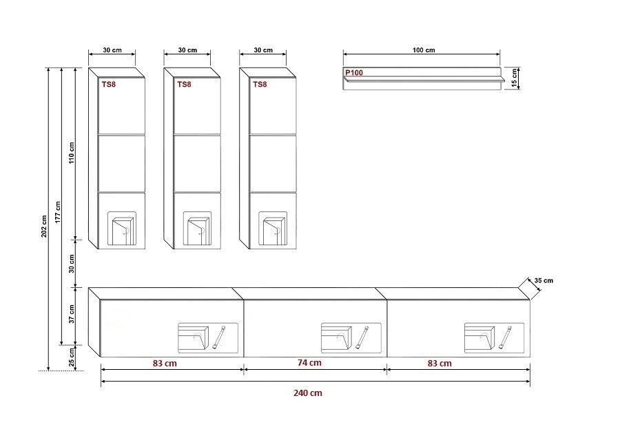 M17 1J Möbel Wohnzimmer Wohnwand Mediawand Wohnschrank Schrankwand Farbauswahl