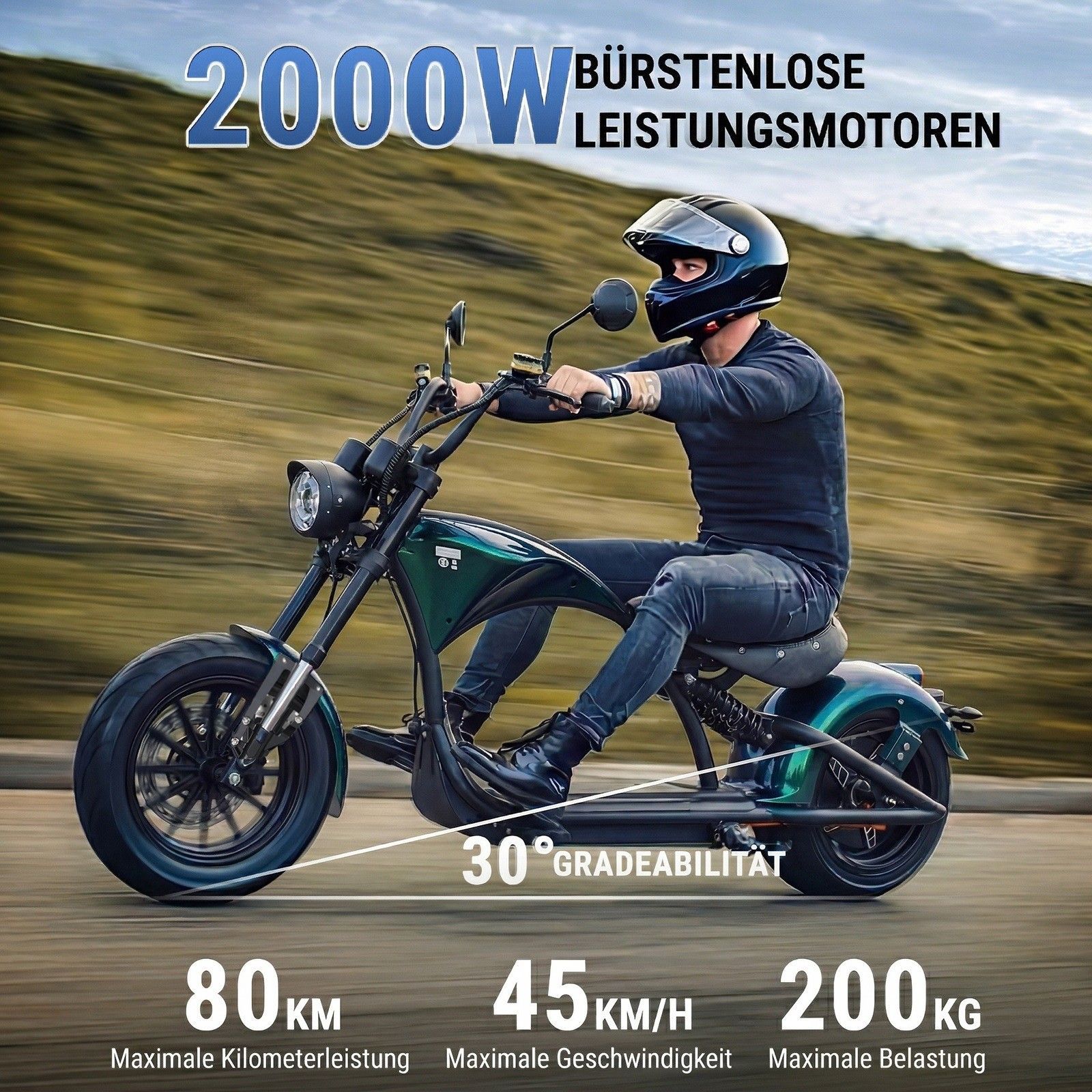 M1P Plus Elektromotorrad: 2000W Bürstenlose Leistungsmotoren mit 30° Steigfähigkeit