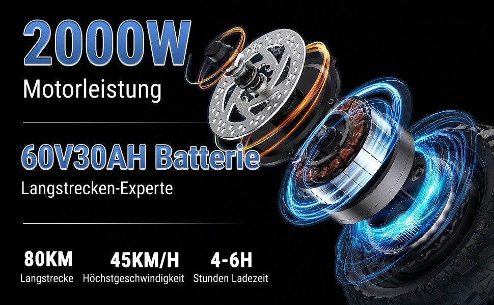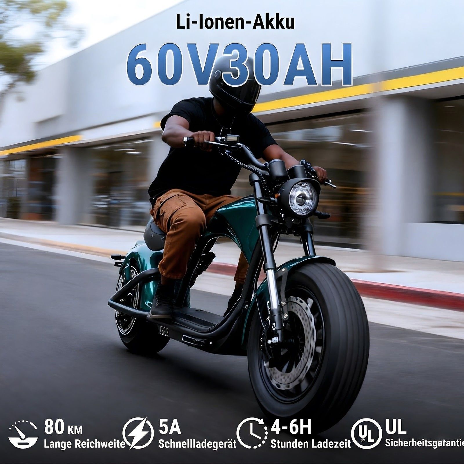 60V 30Ah Lithium-Ionen-Akku | Bis zu 80km Reichweite | 200kg Belastung