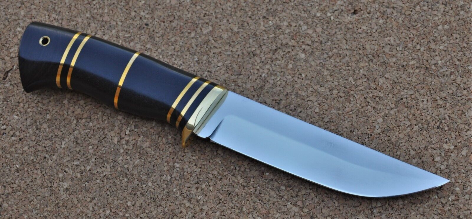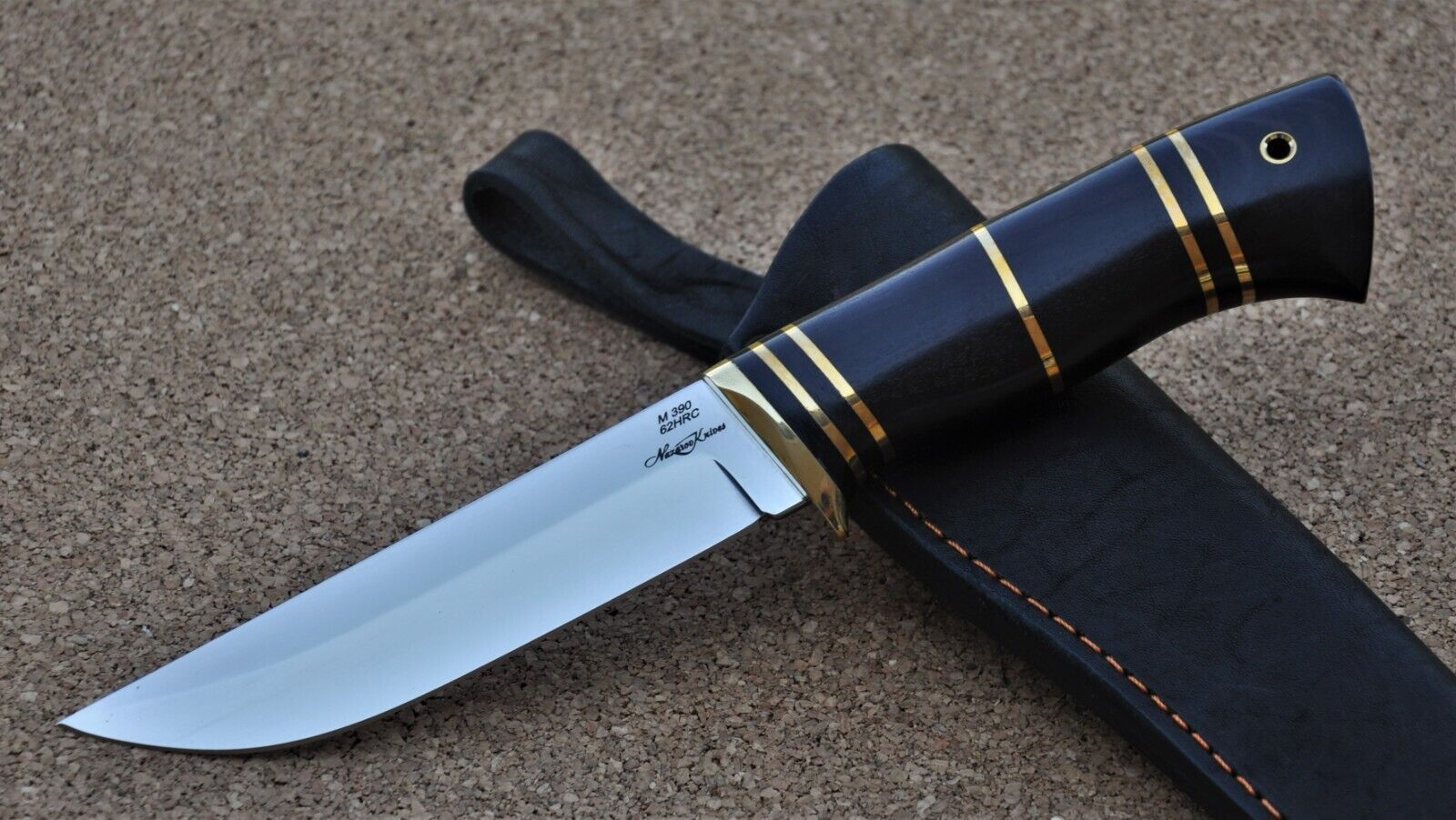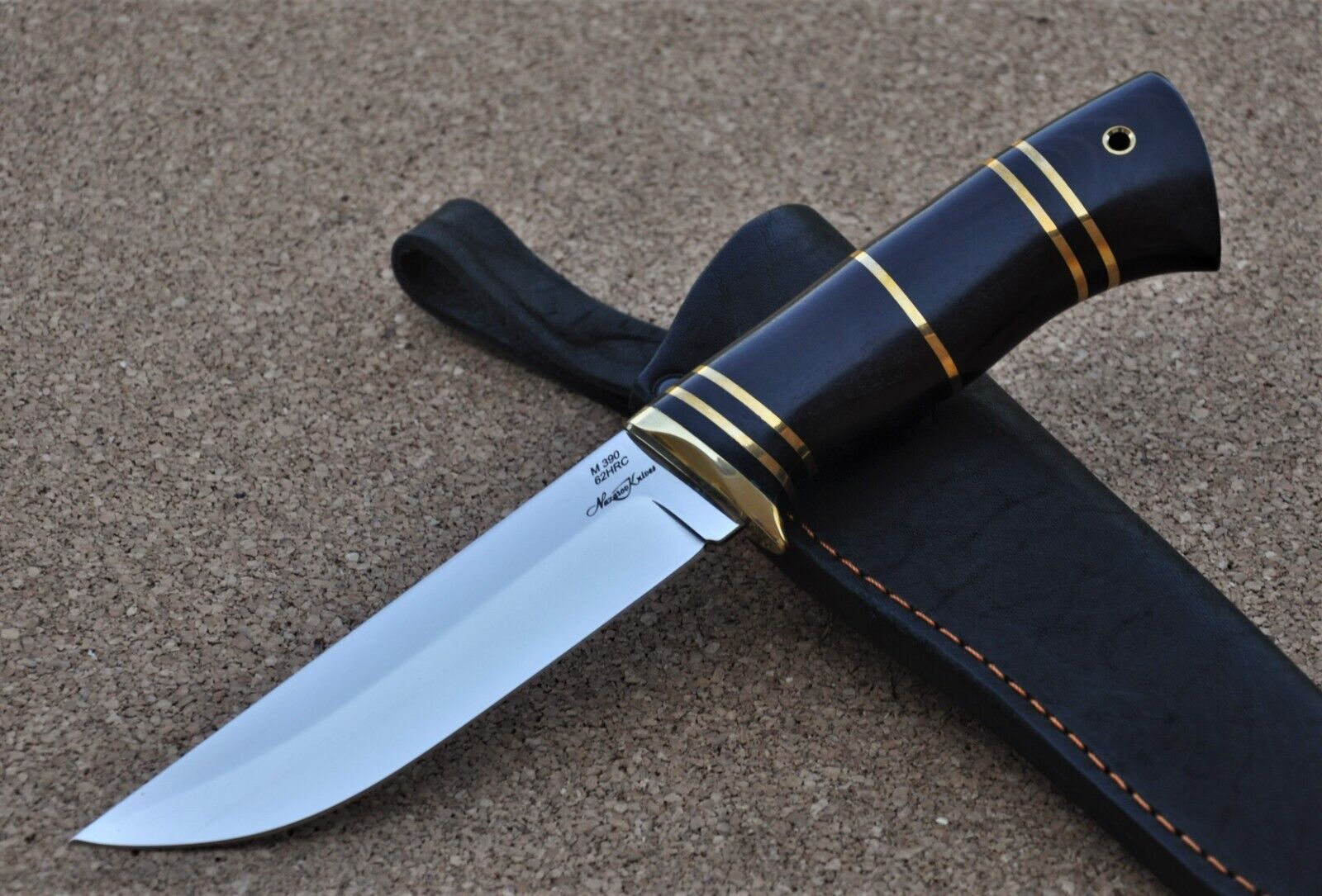 Zum Verkauf steht ein Jagdmesser aus M390 Stahl der Firma Nazarov Knives aus Russland. Parameter: Messerlänge: ca. 245 mm Klingenlänge: ca. 125 mm Rückenstärke: ca. 2,3 mm Klingenbreite: ca. 28 mm (mittig gemessen) Stahl: M390 poliert HRC: 62 Griffmaterial: schwarze Hainbuche+ Messing Gewicht: ca. 1
