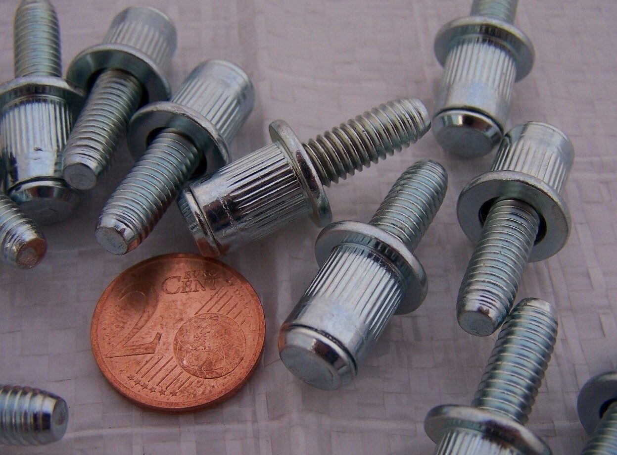 Blindnietbolzen M4 bis M8 und passende Bohrer Blindnietbolzen werden auch Blindnietschrauben genannt. Material: Stahl, silber verzinkt mit Flachkopf. Schraubenqualität 8.8. Die technischen Informationen zu den wählbaren Nietmuttern finden Sie in der nachfolgenden Tabelle Wählen Sie zwischen glattem