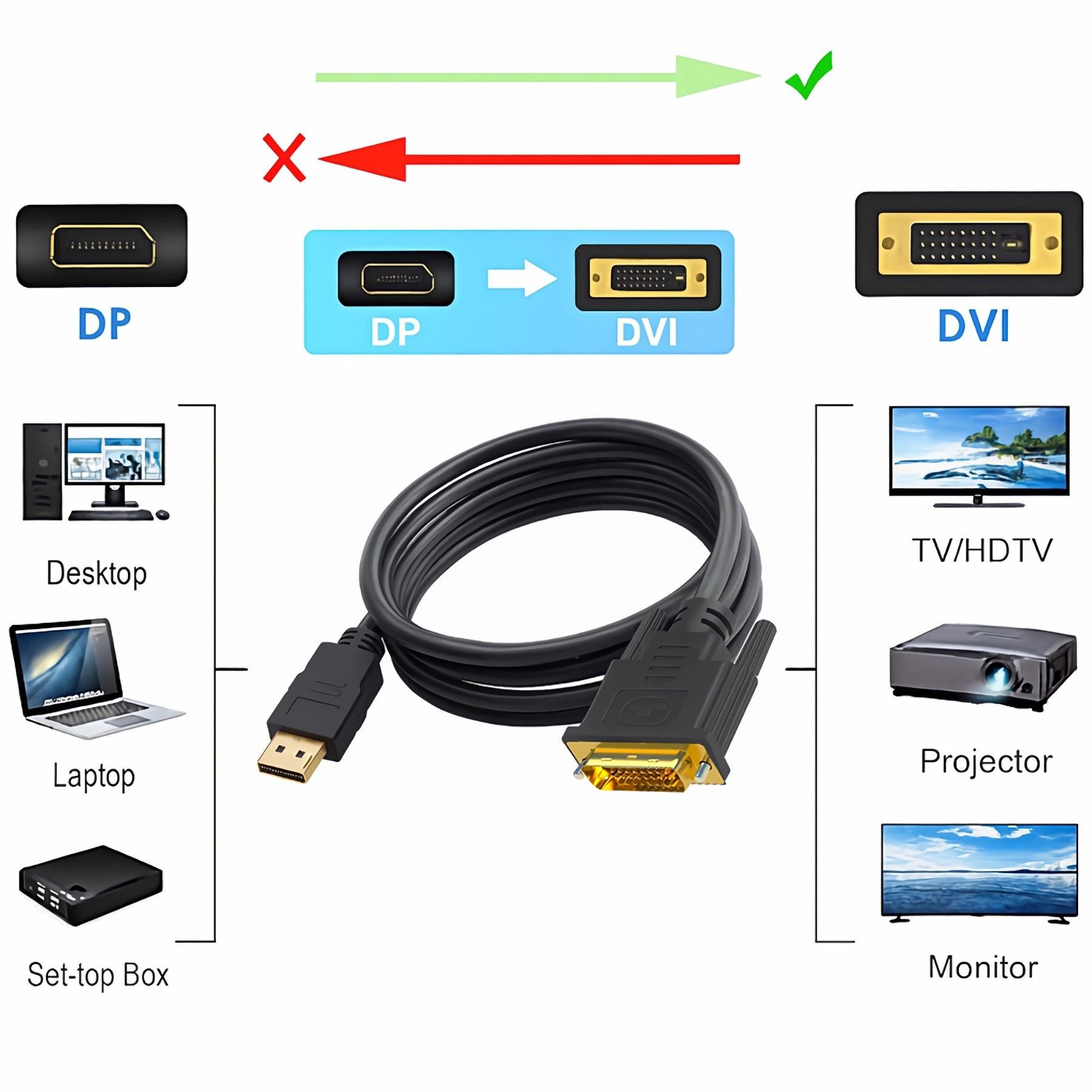 M43 DisplayPort auf DVI Kabel 1,8m 1080P DP zu DVI Konverter für PC Monitor Projektor