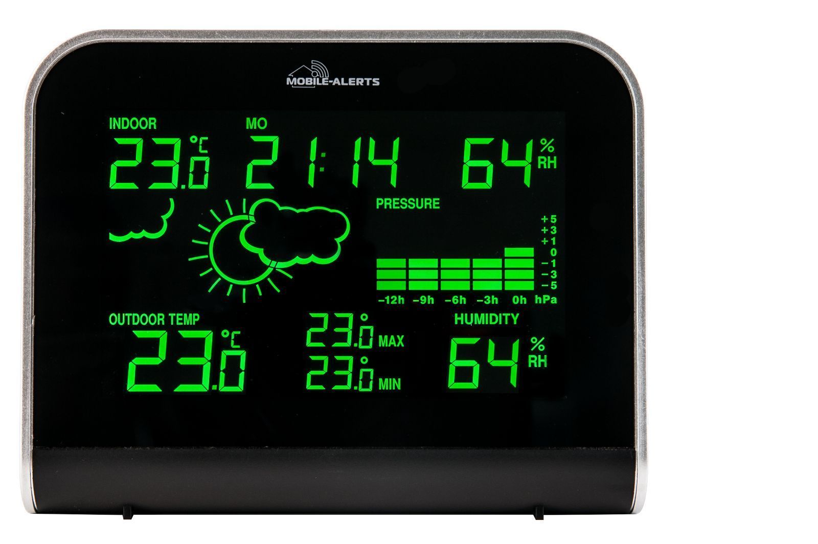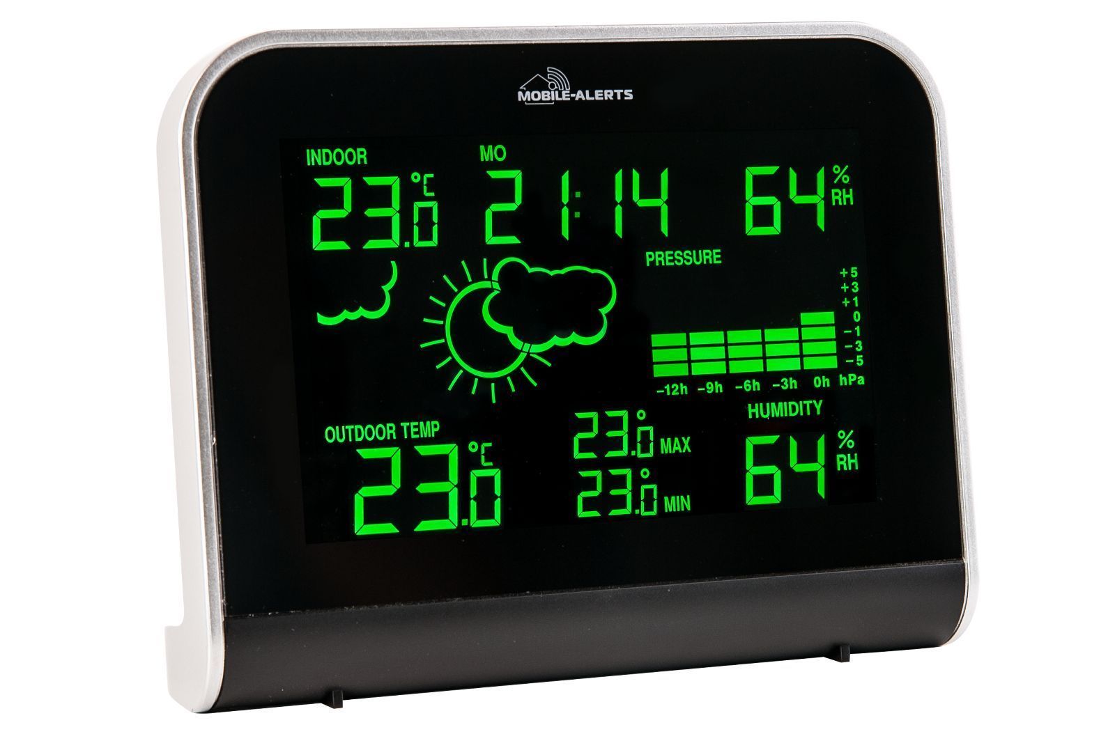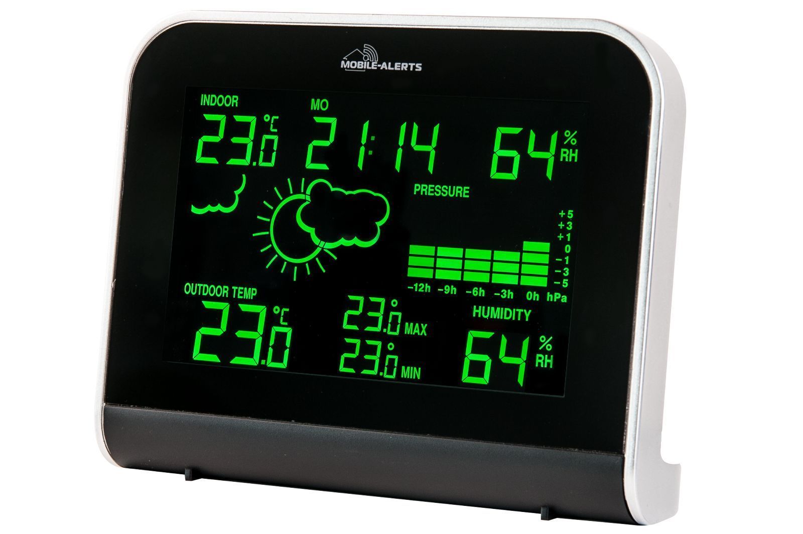 MA 10920 MOBILE ALERTS Die MA 10920 ist eine Wetterstation mit Anbindungsmöglichkeit an das Hausüberwachungs-System von Mobile Alerts. Mit dieser Wetterstation erhalten Sie die genaue Uhrzeit über Funk-Empfang und aktuelle Informationen zu der Temperatur, zu der Luftfeuchte und zum Luftdruck. Es wir
