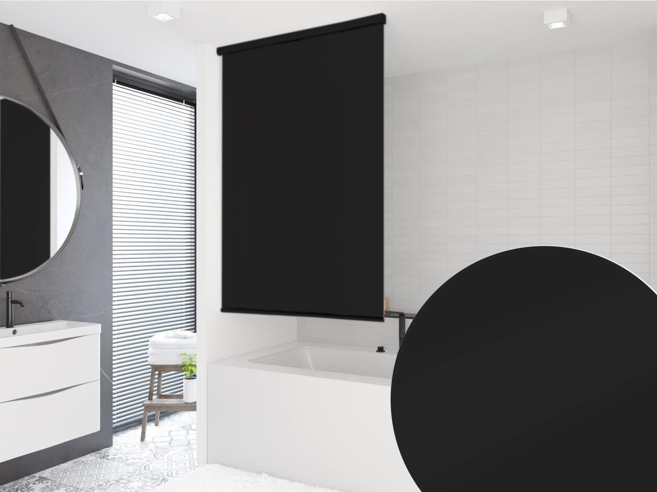 Maßanfertigung Halb-Kassetten Duschrollo Duschvorhang war gestern! Wir fertigen Duschrollos auf Ihr Wunschmaß! Absolut platzsparend und zugleich edel im Design! Muster des Duschvorhangs und Halb-Kassette: Schwarz - wie abgebildet. Artikelbeschreibung: umweltfreundliches, recyclefähiges und chloridfr