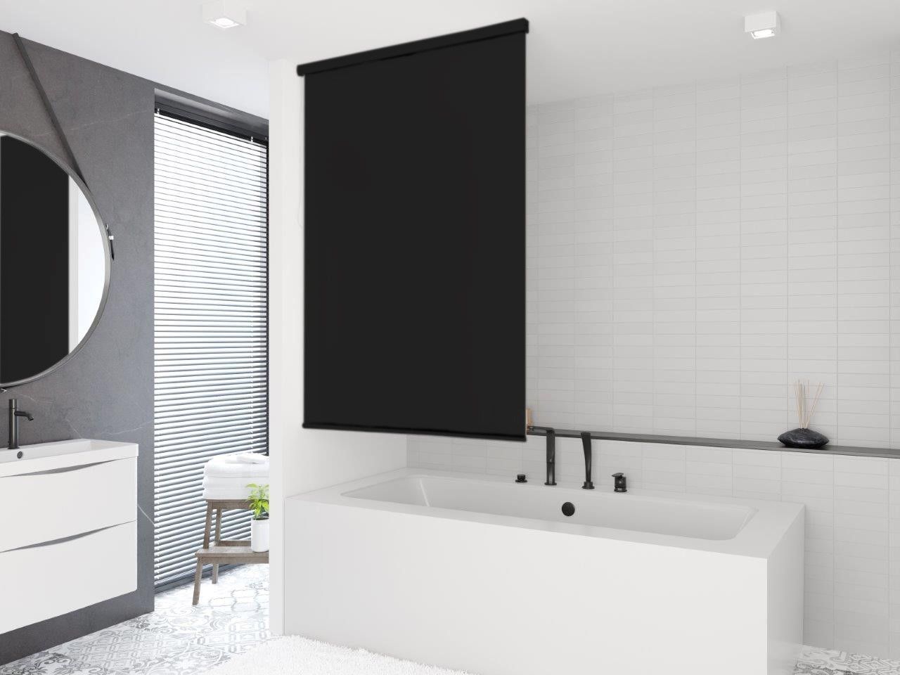 Maßanfertigung Halb-Kassetten Duschrollo Modell UNI Schwarz