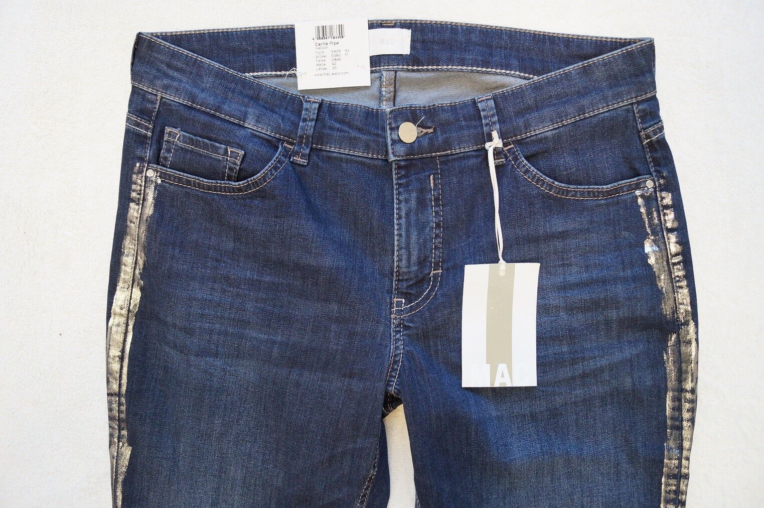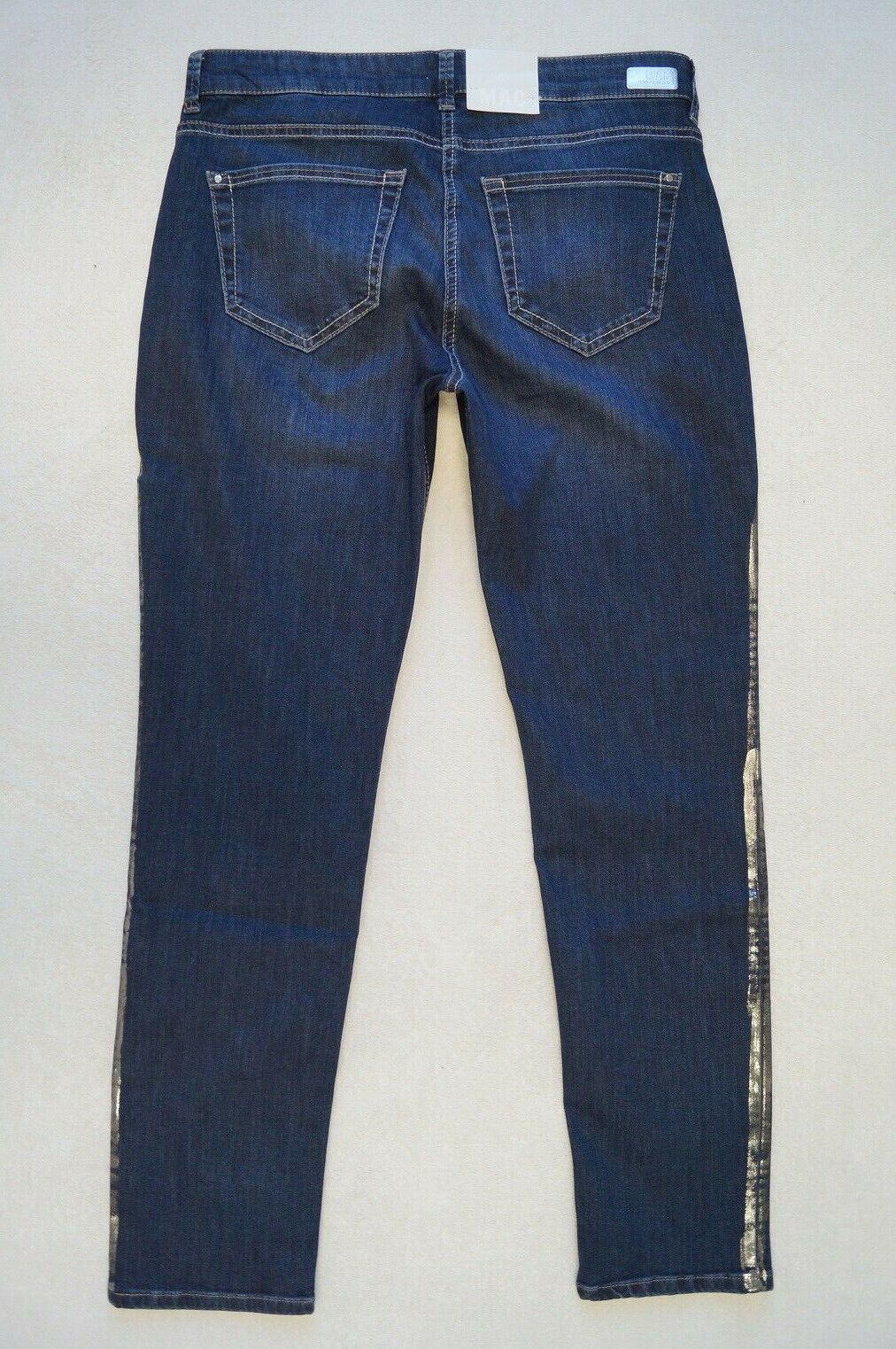 MAC Modell: Carrie Pipe Galloon Jeans Form: 5909 Artikel: 0380 -moderne Leibhöhe, - Stretch Gr.36, 38 L 30, 32 Farbe: dunkelblau (D845) Silberfarbende Coating Material: 97%Baumwolle,3%Elasthan Super Qualität NEU mit Etikett UVP: 99,95 Euro Beim Kauf von mehreren Artikeln wird nur einmalig Porto bere
