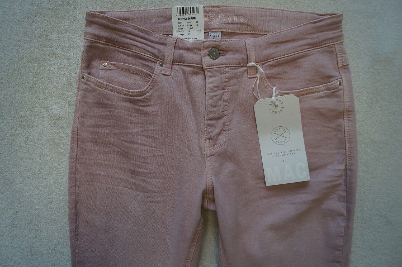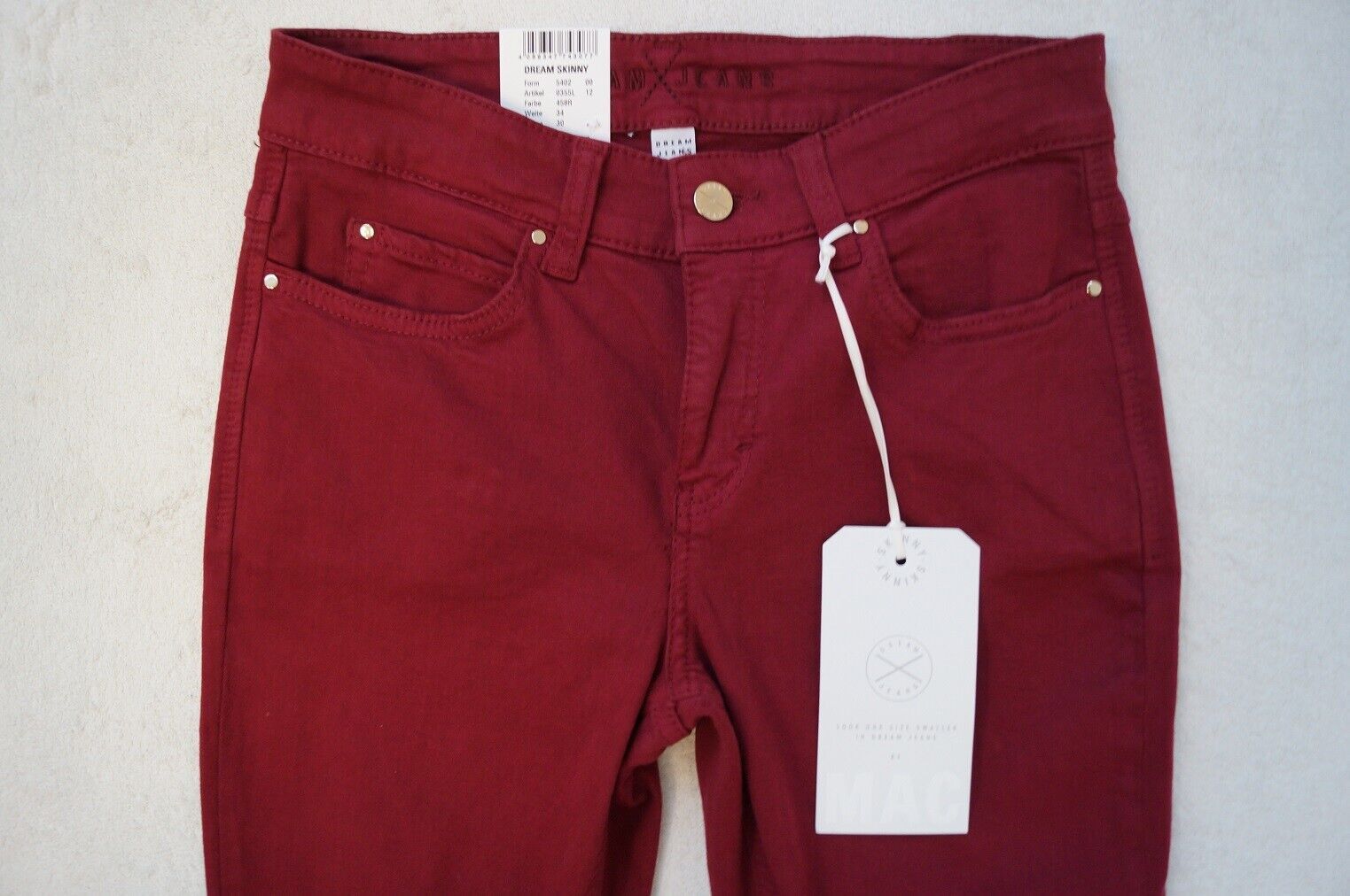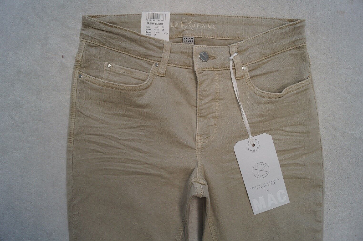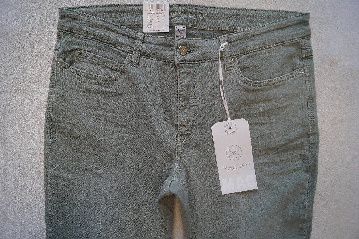 MAC Modell: Dream Skinny Jeans LOOK ONE SIZES SMALLER IN DREAM JEANS Stretch Form: 5402 Artikel: o355 Größe: 34, 36, 38, 40, 42, 44, 46 L 28, 30, 32 Farbe: oliv-grau (343 W), rosa (715W), weinrot (458R) oder beige (214W) Material : 92%Baumwolle, 6%Polyester,2%Elasthan oder 91,5 Baumwolle,6%Polyester... Mehr