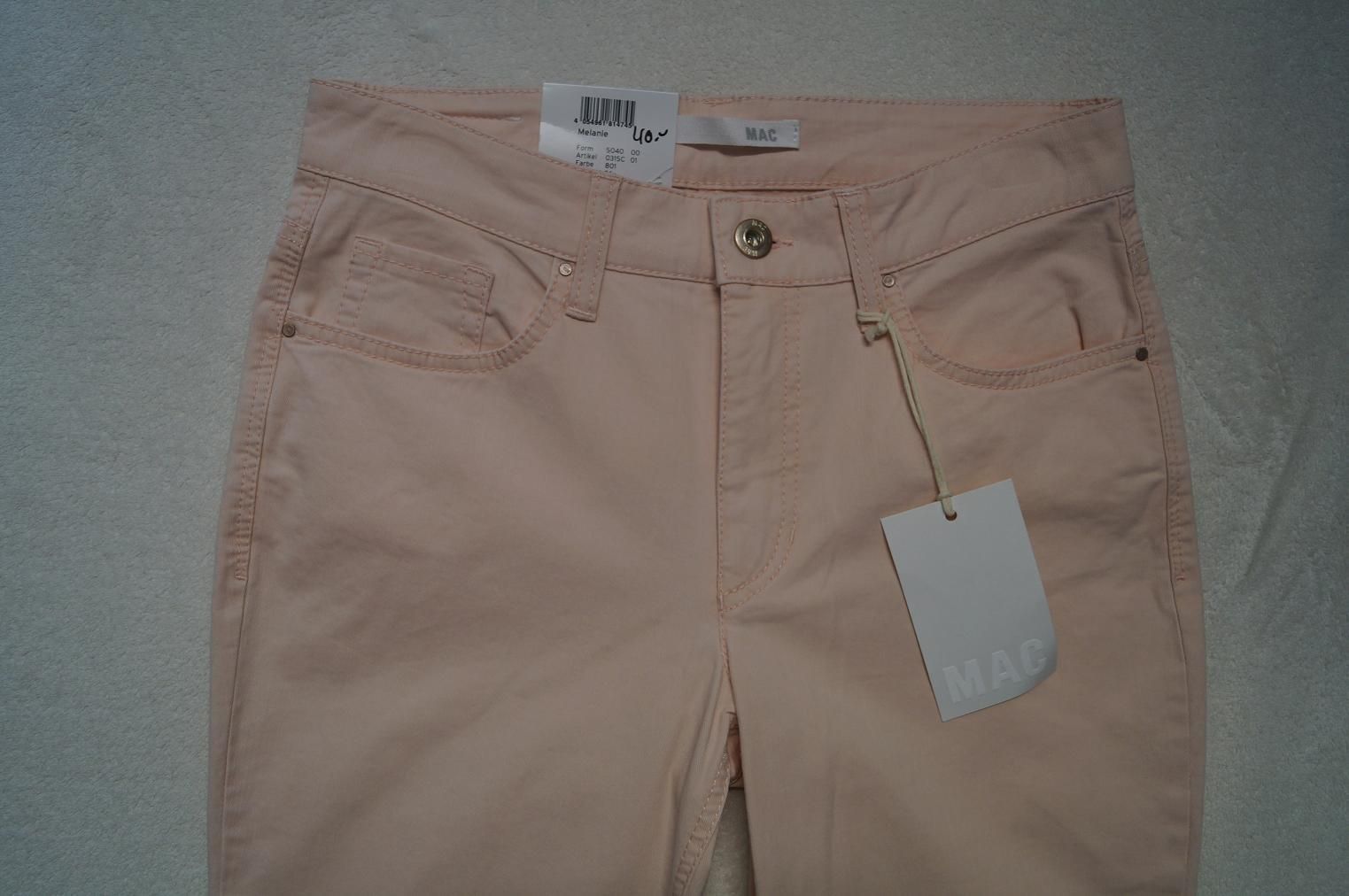 MAC Modell: Melanie Jeans Form: 5040 Artikel: 0315 Größe: 36, 38, 40, 42, 44, 46 L 30, 32, 34, 36 Farbe: hellpfirsich (801), weiß (010) oder hellgrün mint ( 603) Material: 97%Baumwolle,3%Elasthan Beachten Sie bitte. Die Hose ist nur einbisschen dehnbar. ( Nicht wie die Hose von MAC Melanie mit Polye