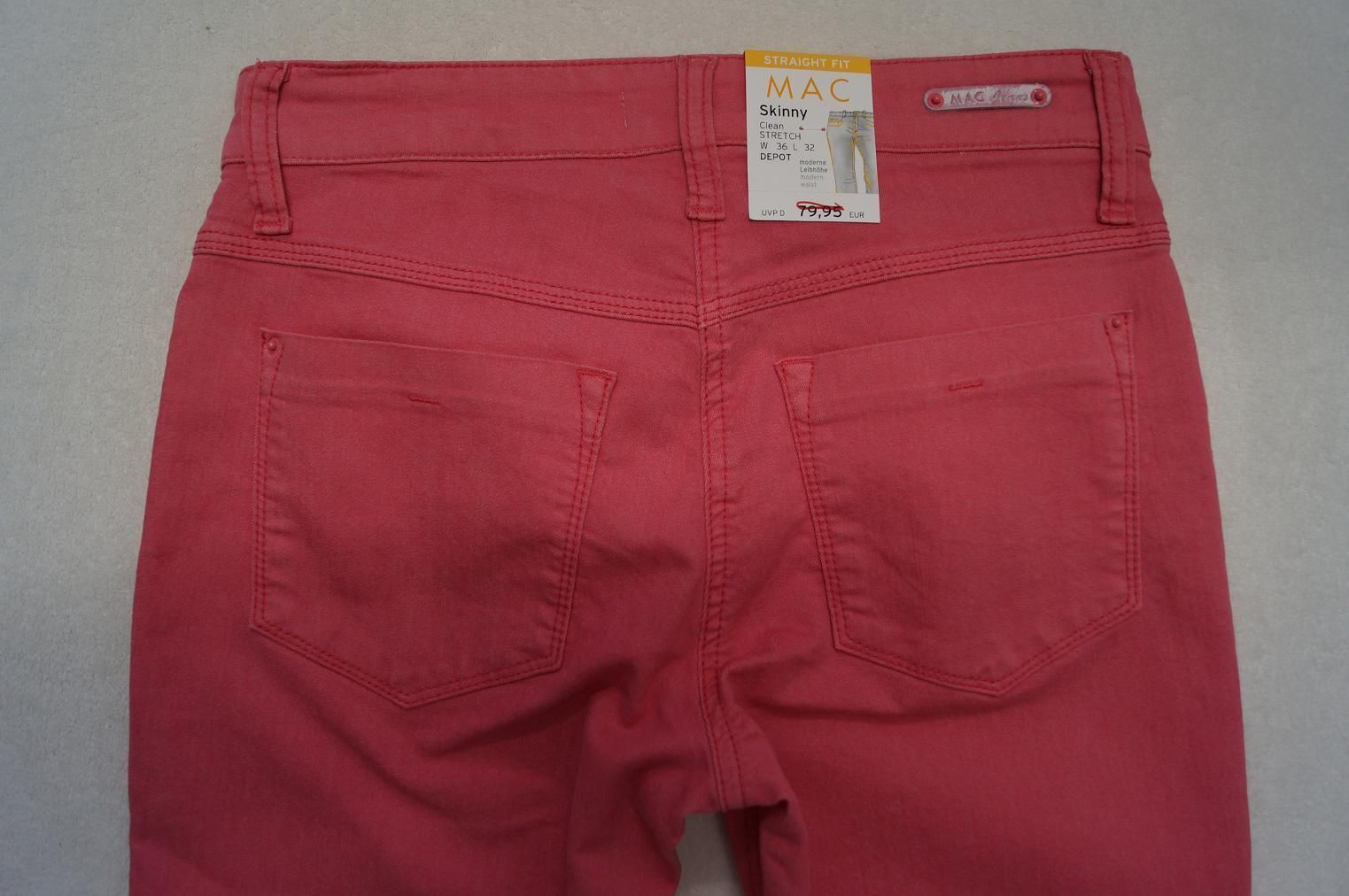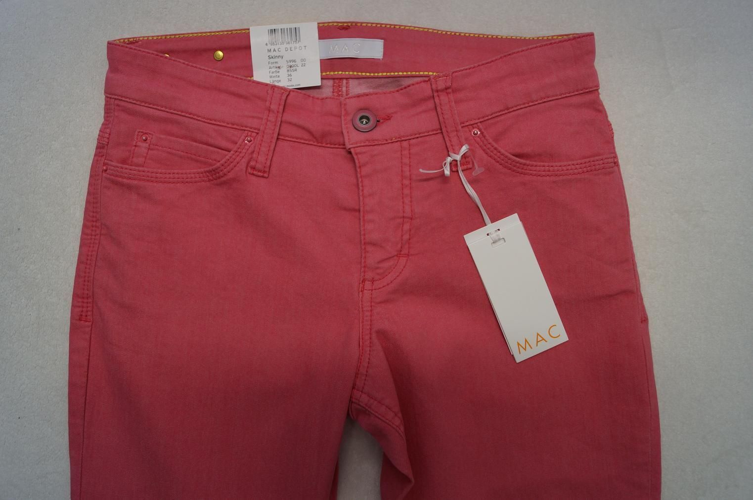 MAC Modell: SKINNY Clean Jeans Form: 5996 Artikel: 0300L - Skinny - moderne Leibhöhe - Stretch Größe: 36, 38, 40, 42, 44, 46 L 30, 32 Farbe: rosa -pink (855R) Material: 66%Baumwolle,30%Polyester,4%Elasthan NEU mit Etikett UVP: 7 9,95 Euro Beim Kauf von mehreren Artikeln wird nur einmalig Porto berec