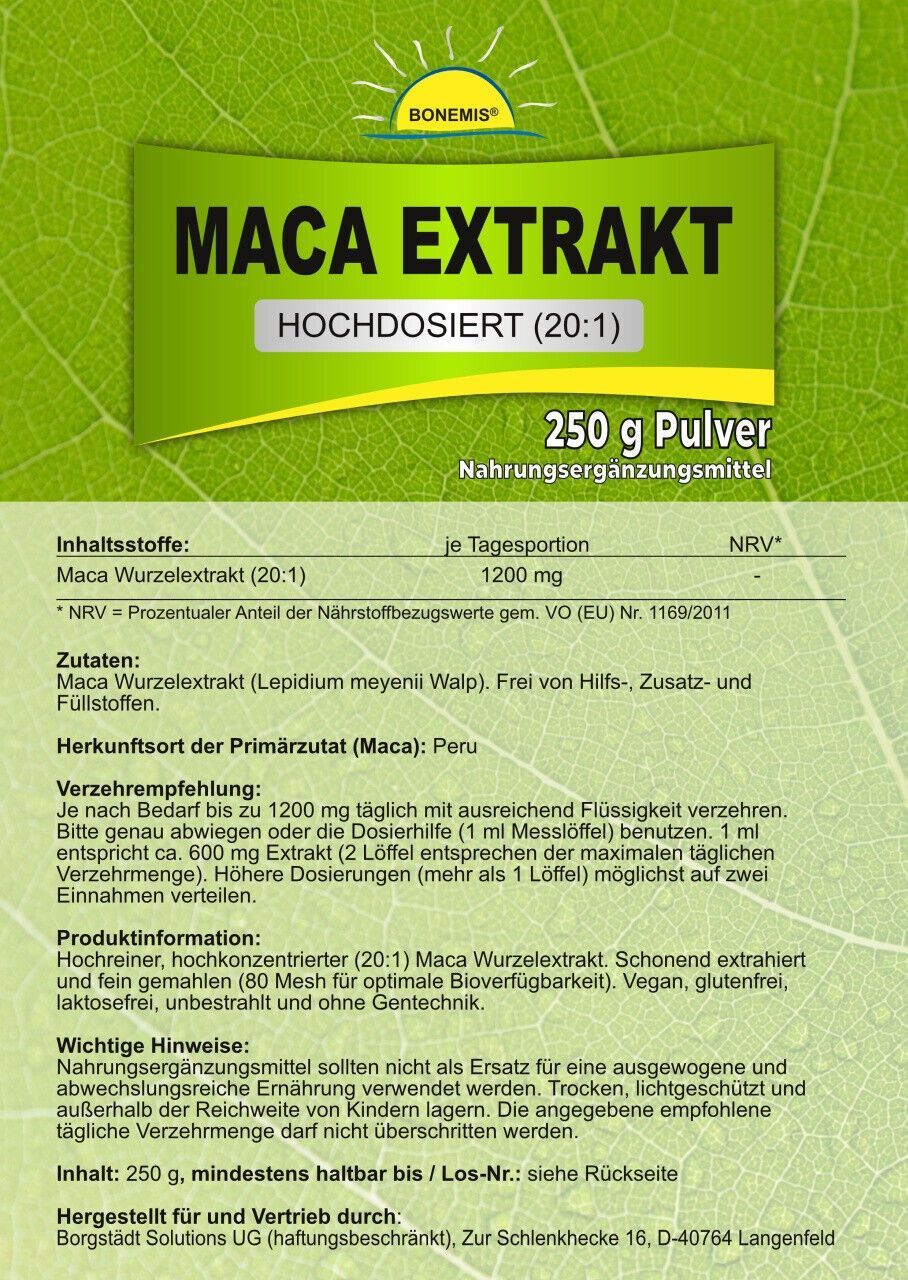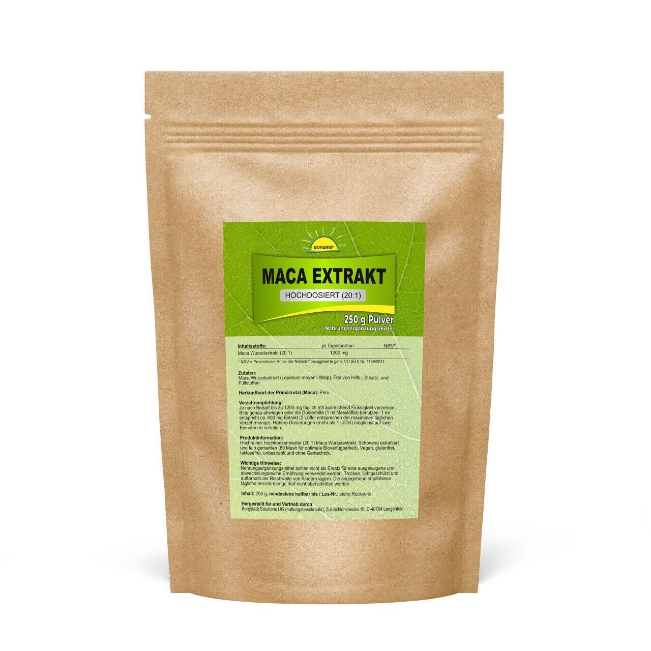 Maca Wurzelextrakt, hochkonzentriert (20:1), ohne Zusatzstoffe, 250 g, Bonemis®