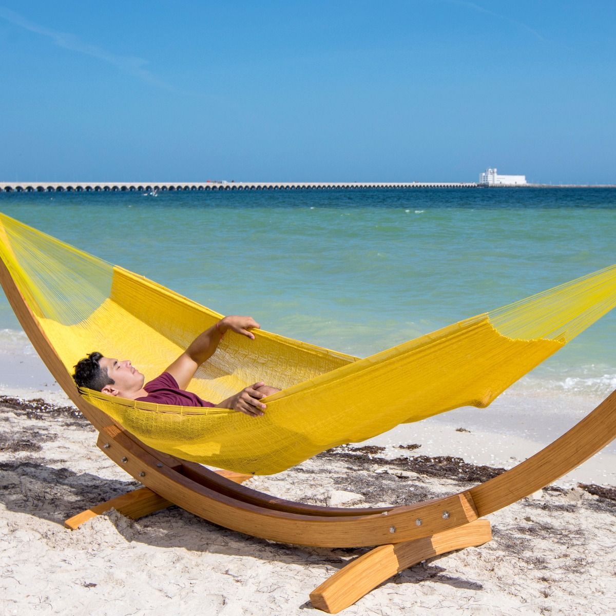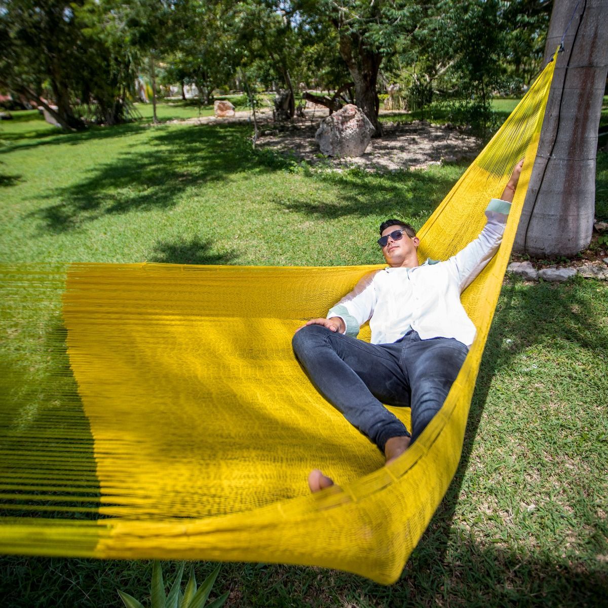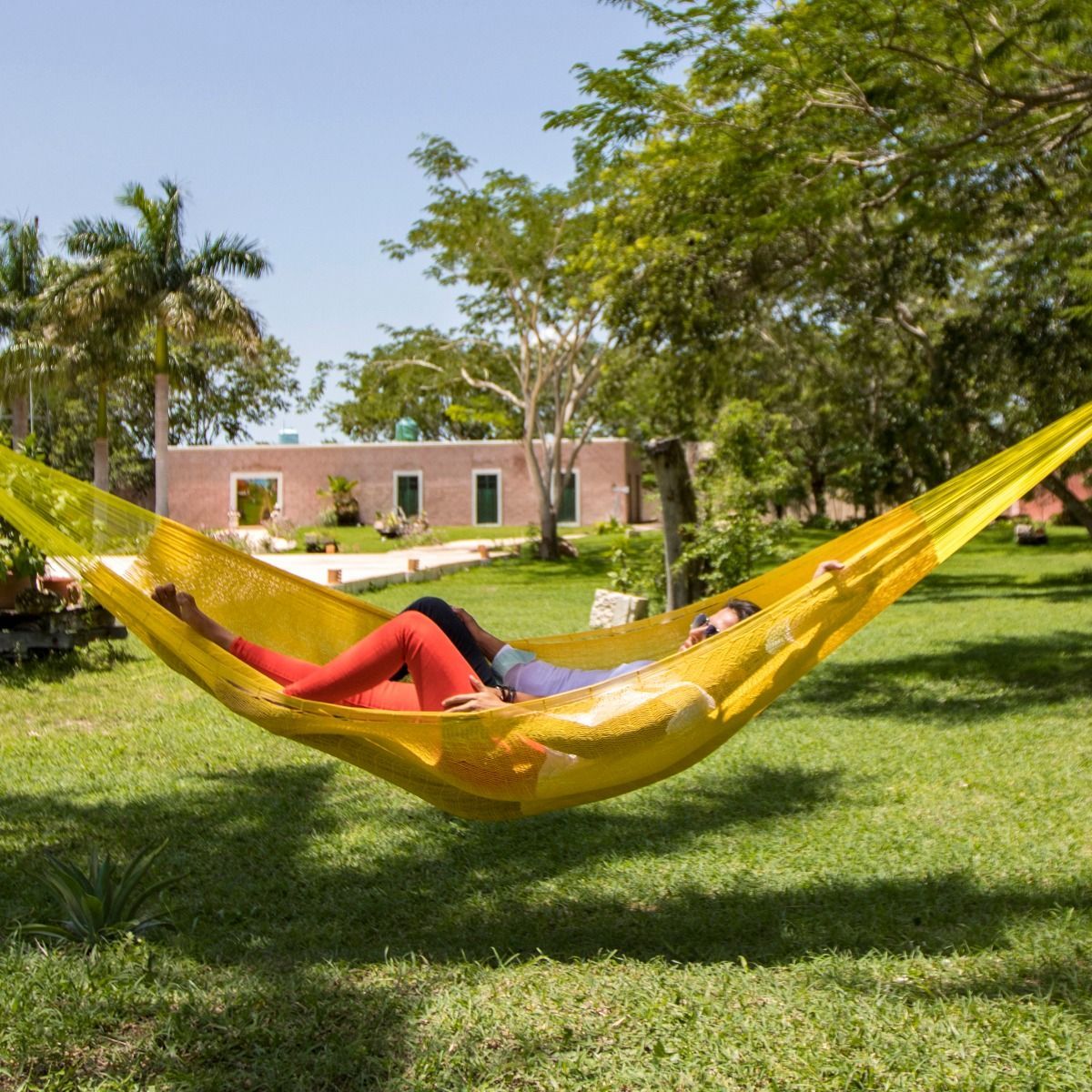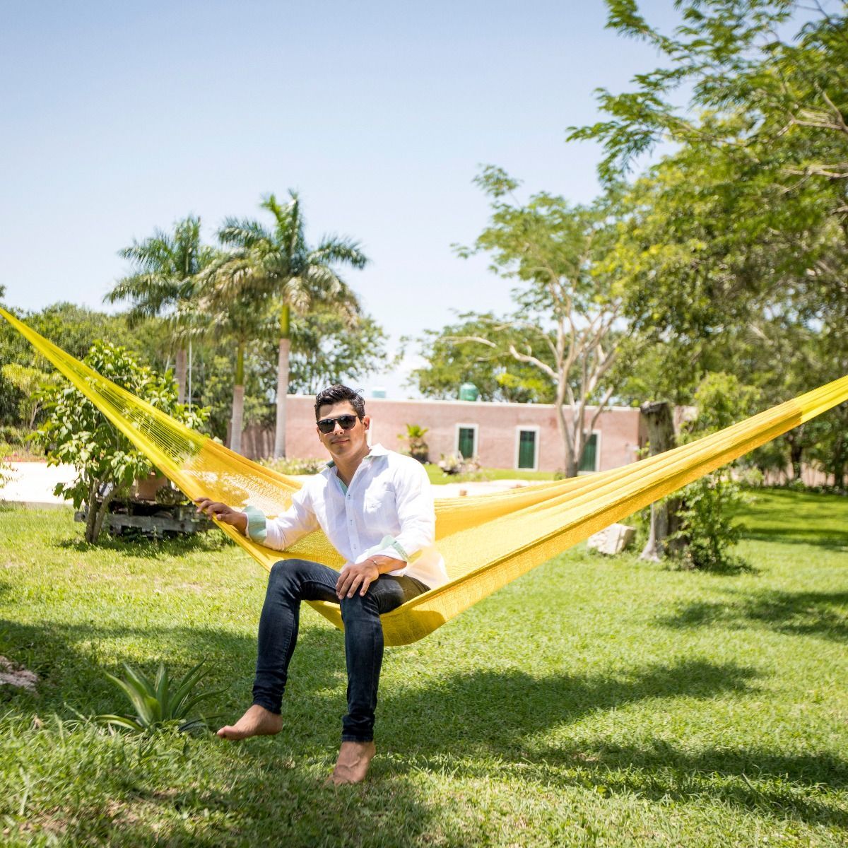 MacaMex MacaMex Mexikanische Netzhängematte Double PLUS gelb Baumwolle Hängematte