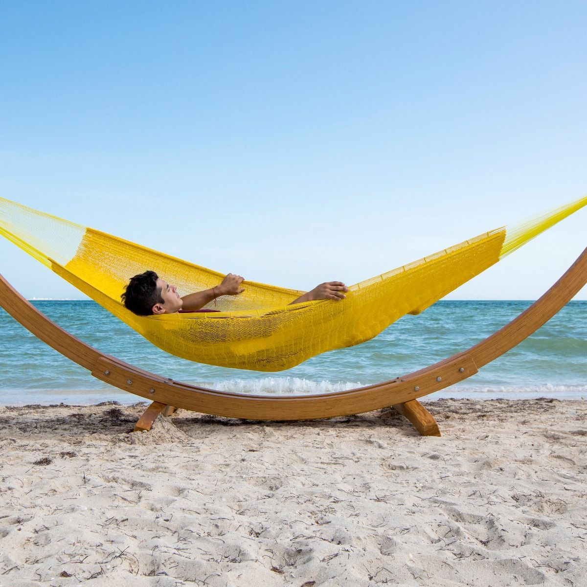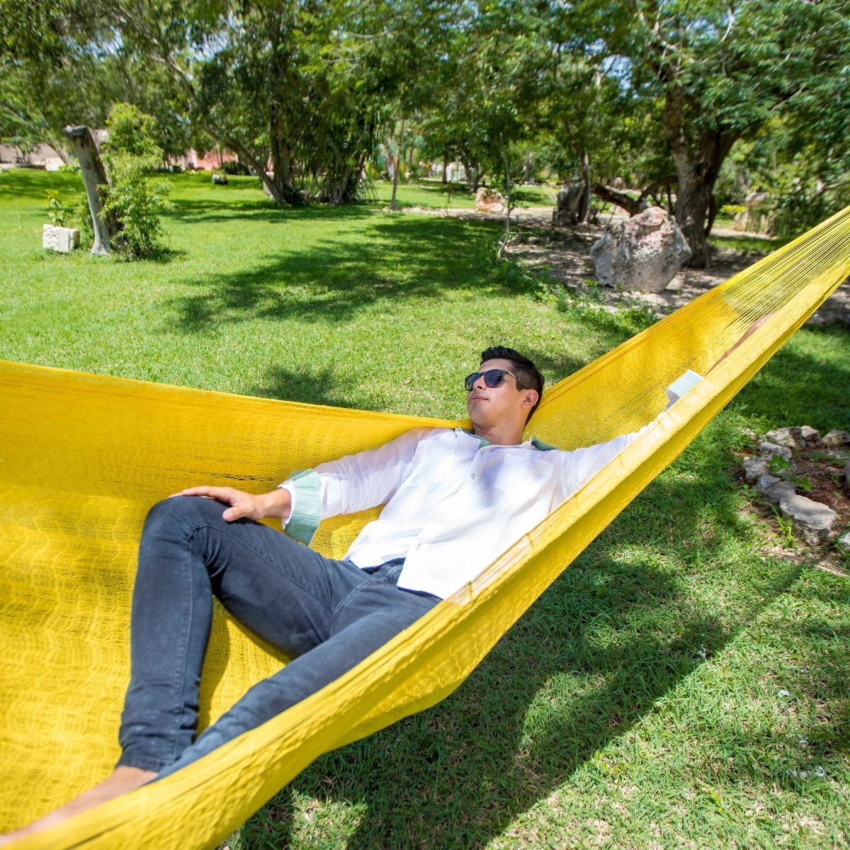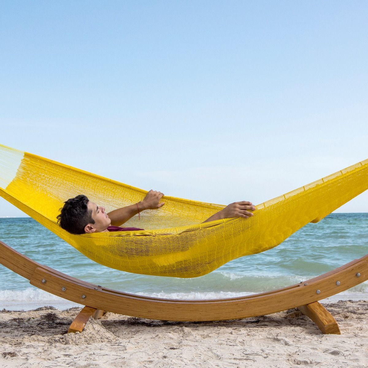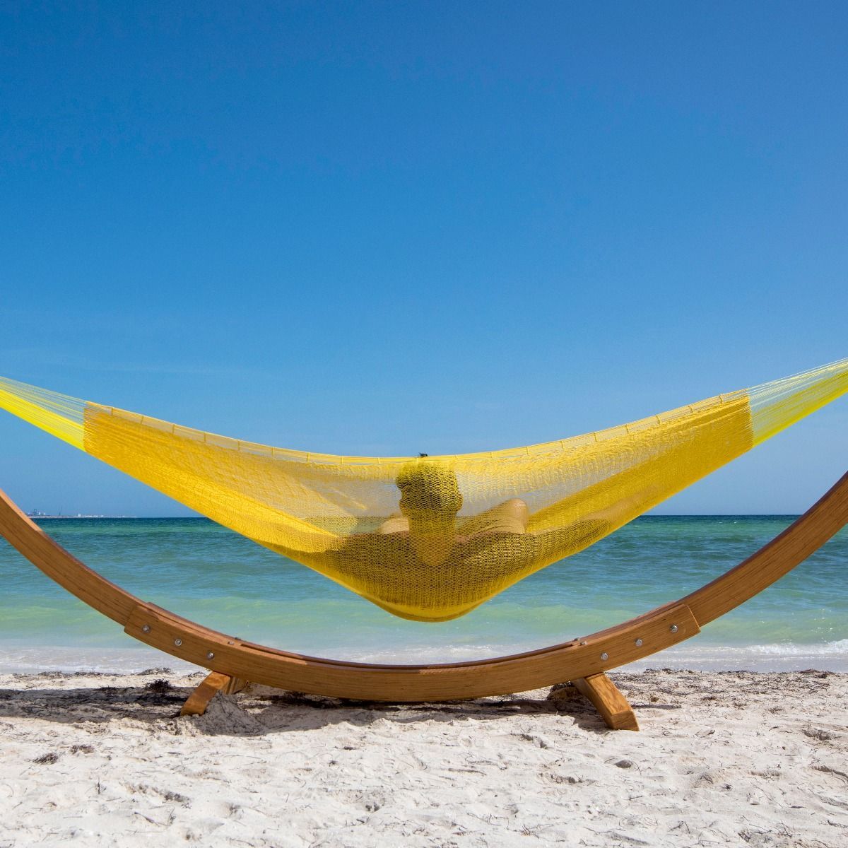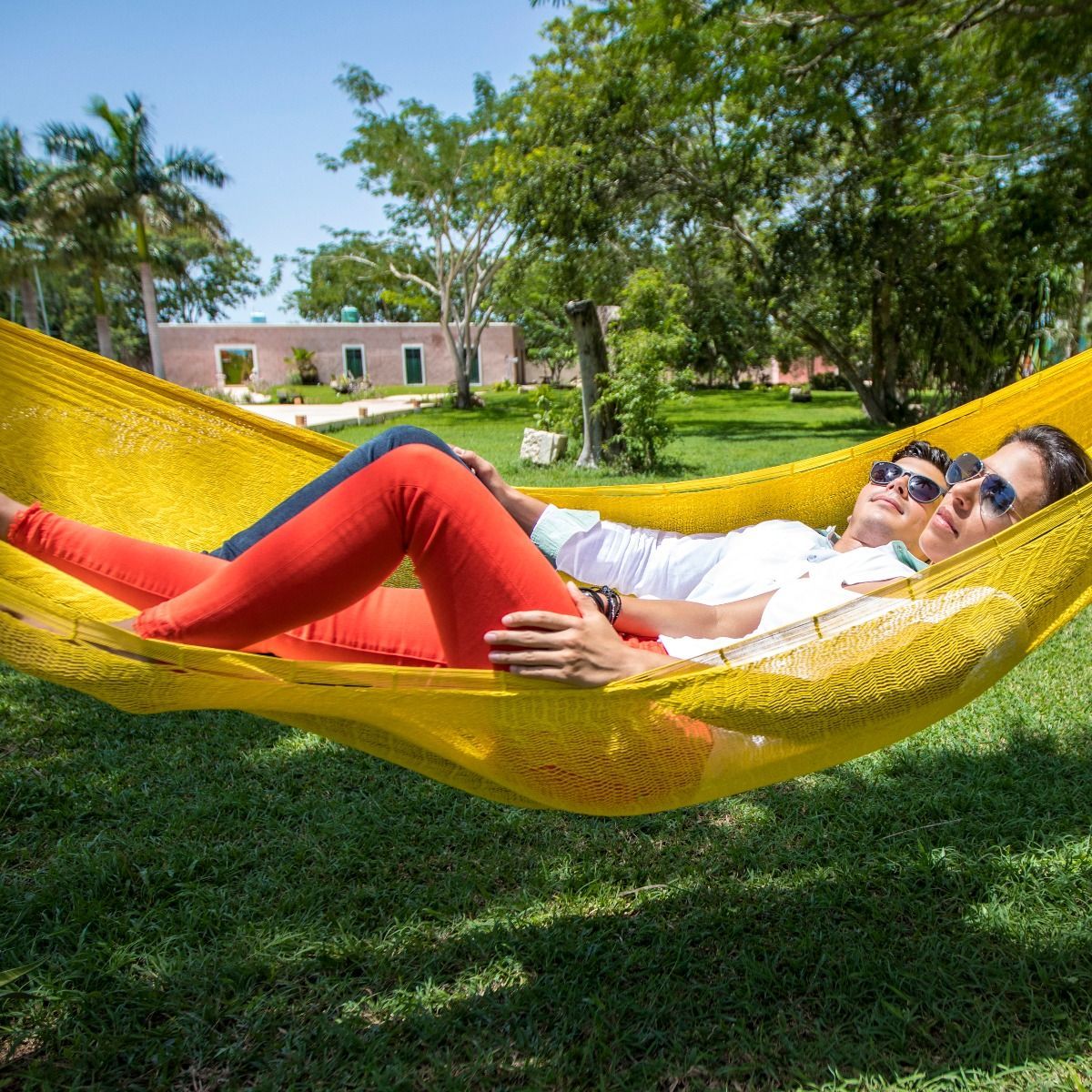 MacaMex MacaMex Mexikanische Netzhängematte Double PLUS gelb Baumwolle Hängematte