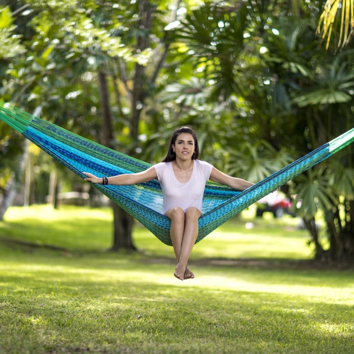 MacaMex MacaMex Mexikanische Netzhängematte Family plus Mare blau-grün Hängematte