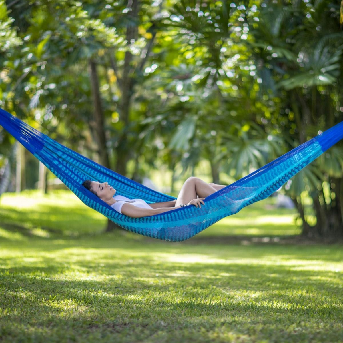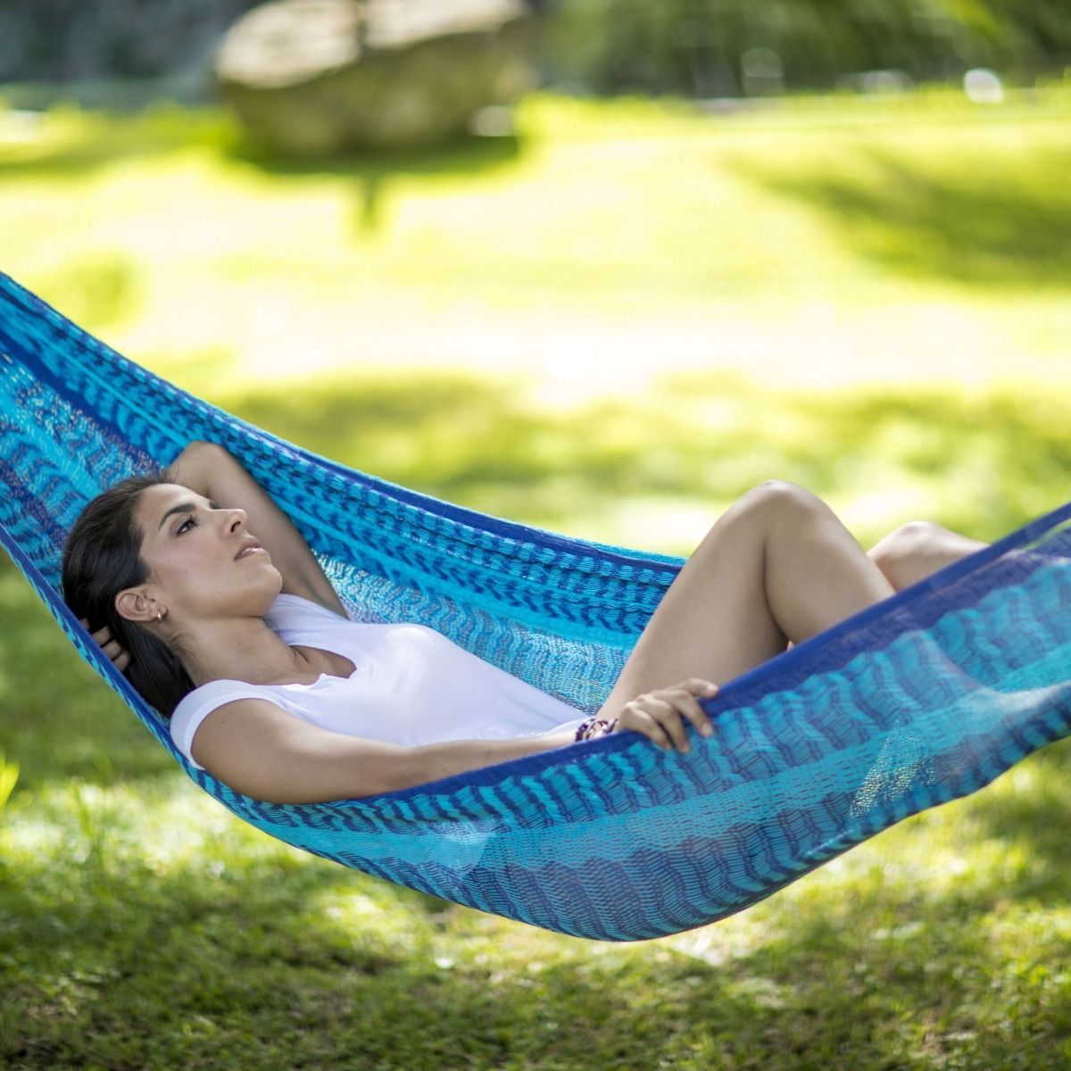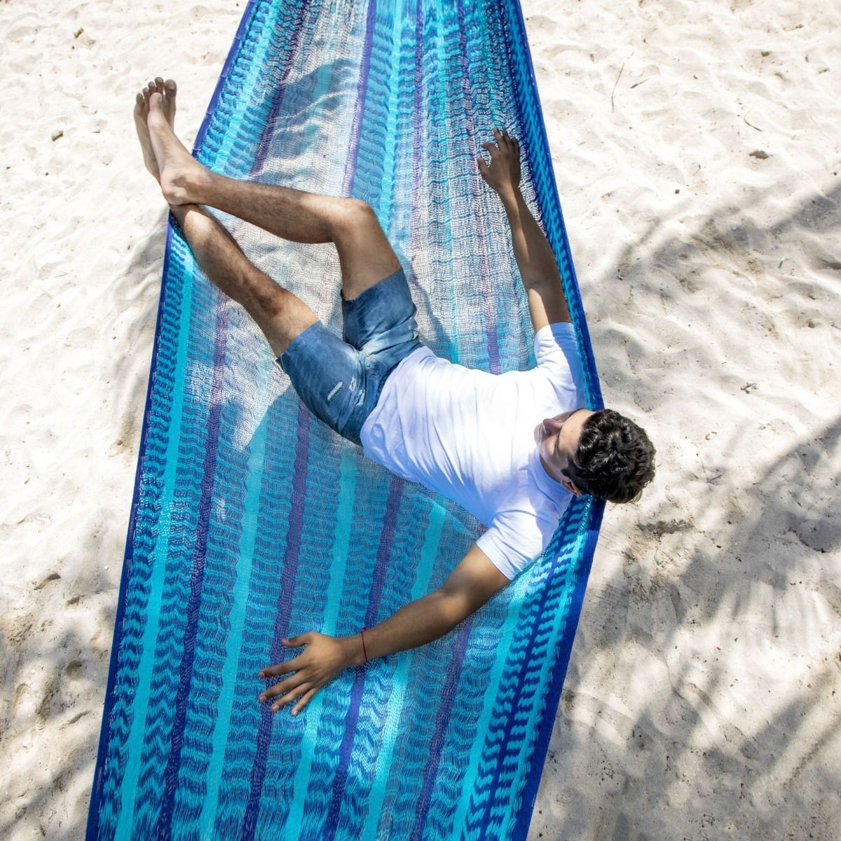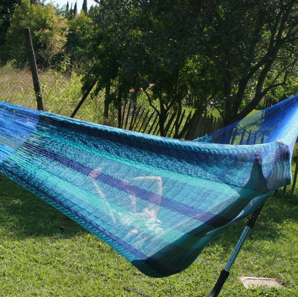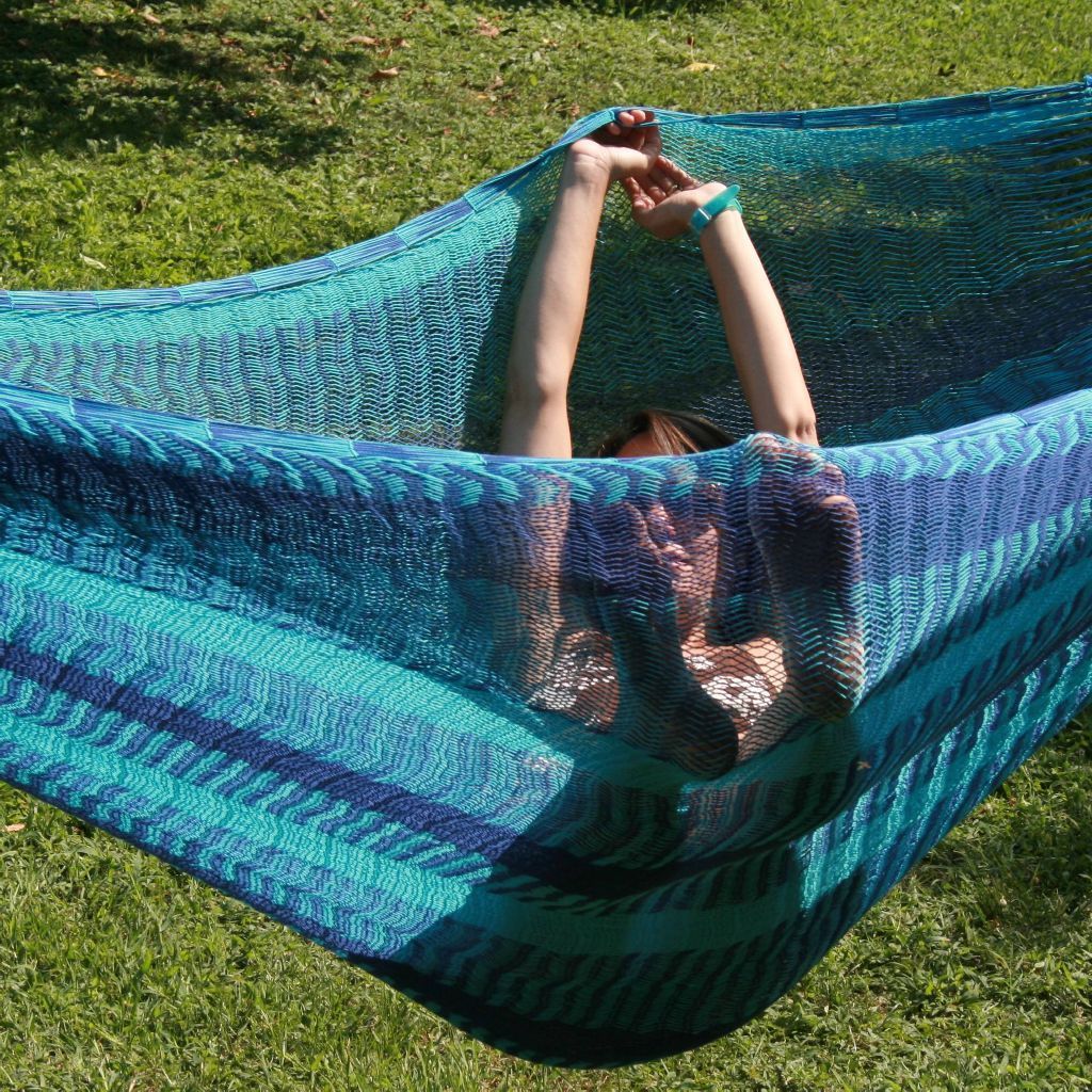 MacaMex MacaMex Mexikanische Netzhängematte Matrimonial Caribe Plus dunkelblau-hellblau