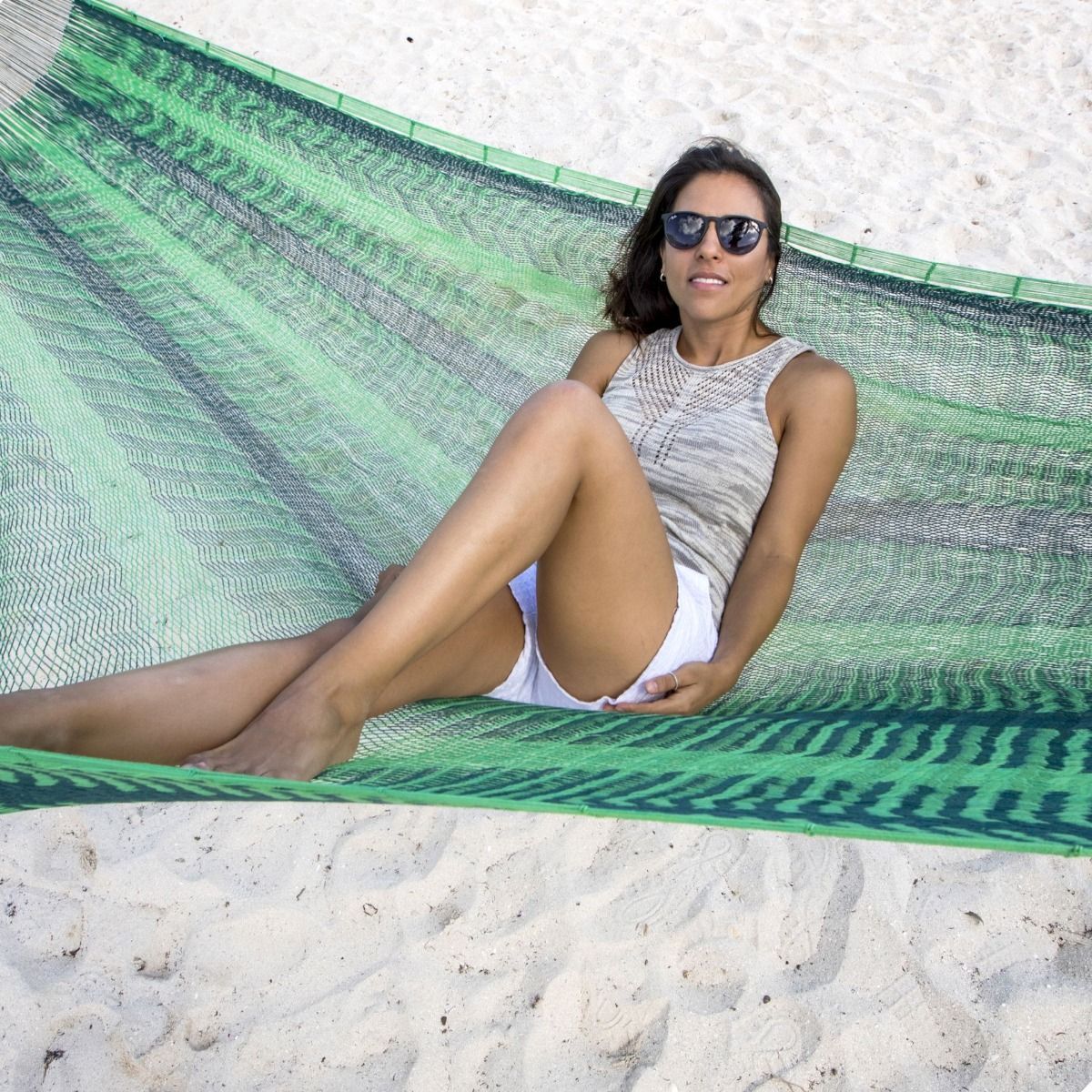 MacaMex MacaMex Mexikanische Netzhängematte Matrimonial Forest dunkelgrün-hellgrün Häng