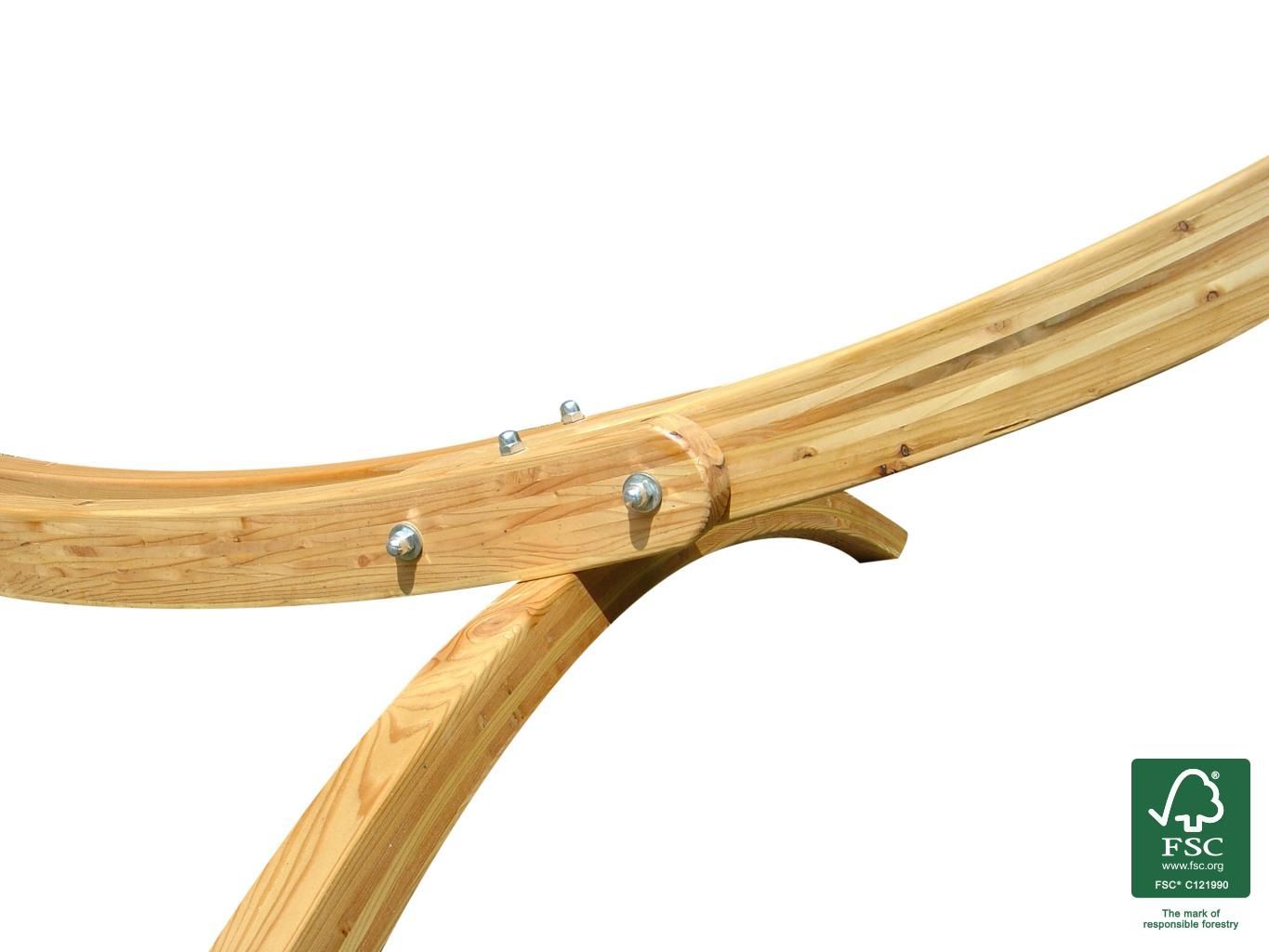 FSC 100%HFA-COC-100133FSC Certified Wood Abmessungen Gesamtlänge 410 cm Belastbarkeit maximal 200 kg Gewicht ca. 30.000000 kg Material Gestell Lärche Hersteller MacaMex Herkunft Polen Gestell Ständer ist inkludiert