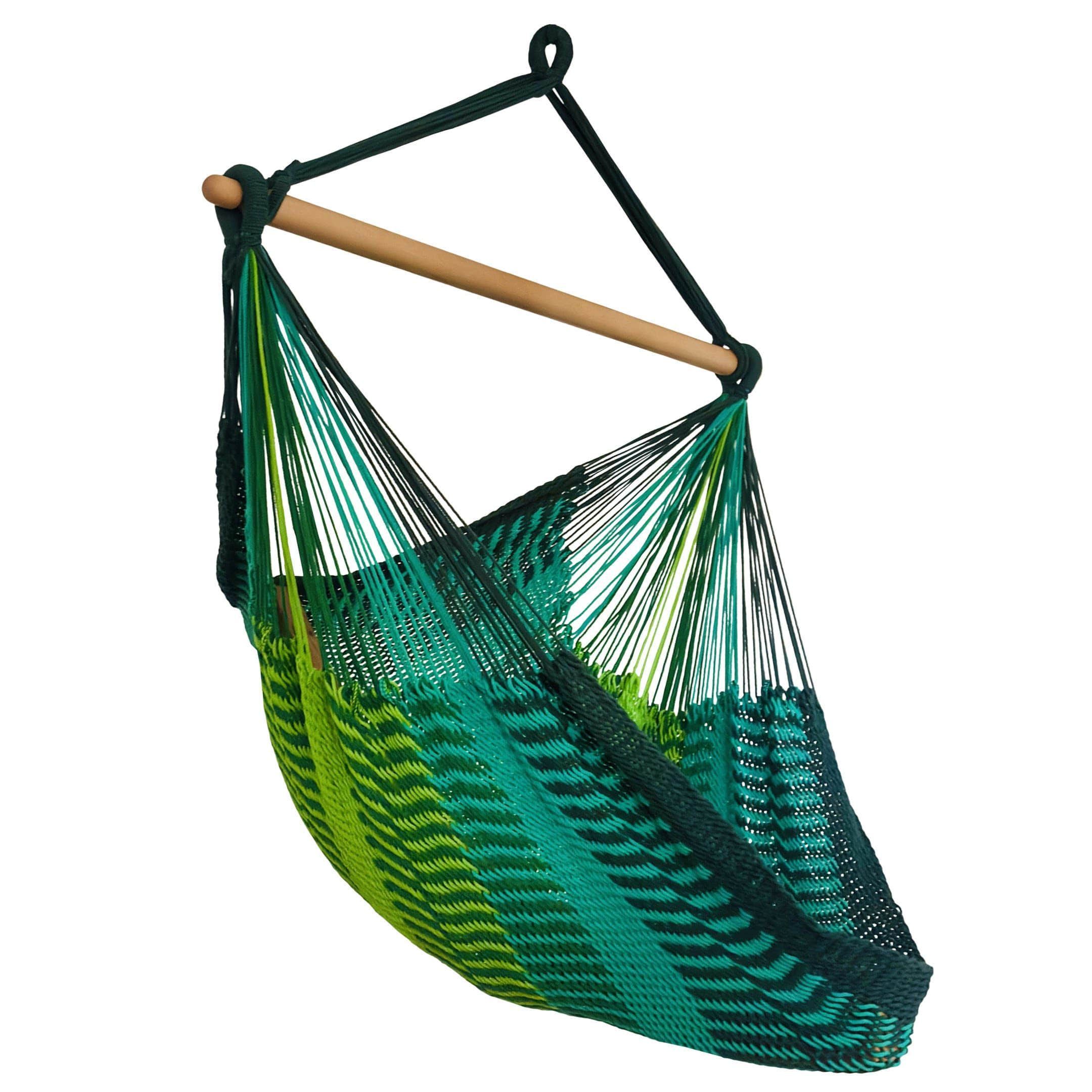 Dieser Netzhängesessel ist besonders robust und reißfest. Die extra dicken Baumwollschnüre sind zu einem dichten Netz verarbeitet und bieten Stabilität für den Rücken. Lehnen Sie sich zurück und entspannen Sie. Die Sitzfläche ist dicht wie Stoff und doch ein flexibles Netz. Das Netz ist angenehm luf